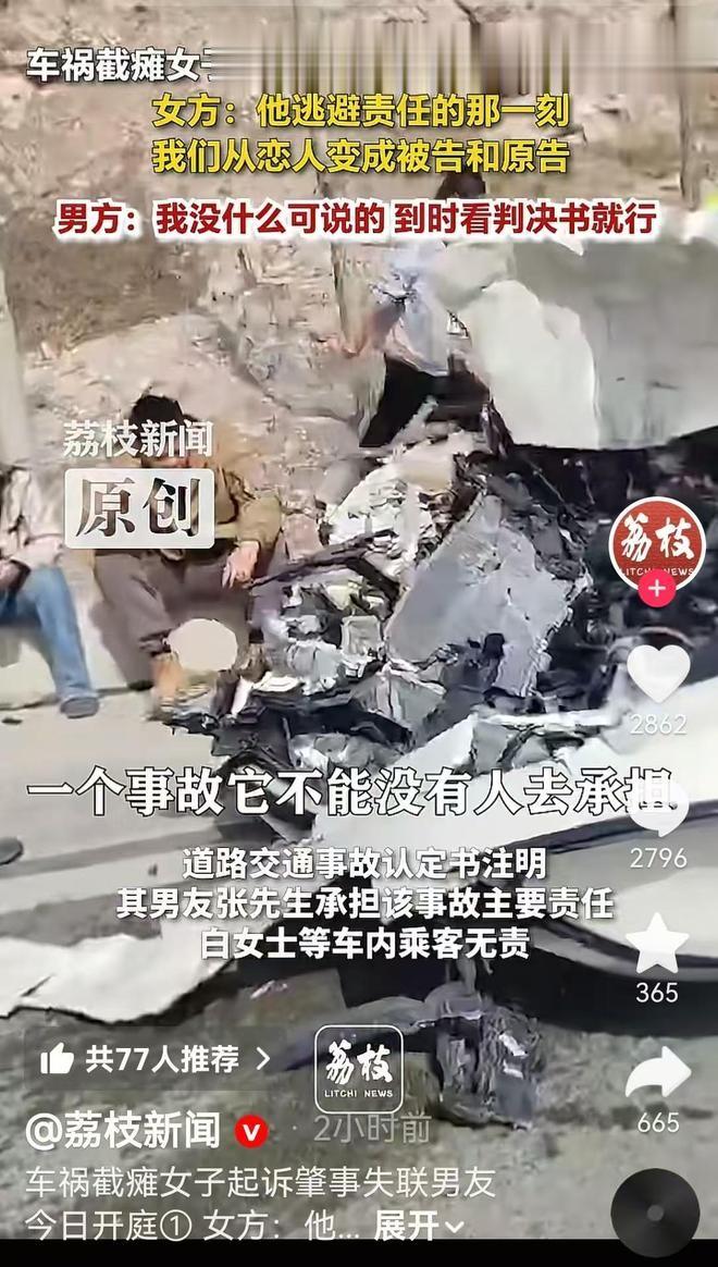 大家纷纷表示,情侣关系不能成为逃避法律责任的挡箭牌,张先生违规驾驶致人截瘫,本就该承担主要赔偿责任,事发后失联逃避,既违背了道义,也触碰了法律底线;25 岁高位截瘫的人生,根本不是金钱能弥补的,白女士的诉求合情合理,法院必须给出公正判决。
