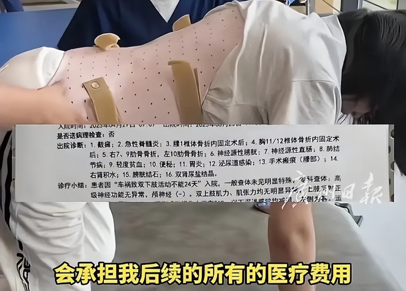 医生明确告知,白女士胸 10 以下完全失去知觉,这辈子都不可能再站起来,后续需要长期康复治疗,终身离不开护理和辅助器具,大小便都无法自主控制。