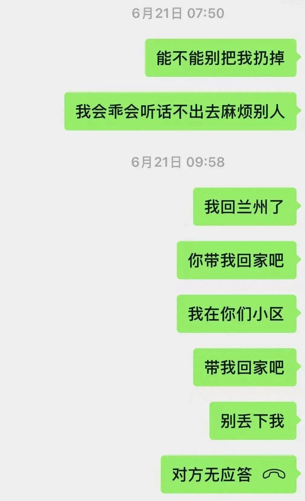 2025 年 6 月底开始,张先生突然不再接听白女士的电话,微信、短信全部不回,甚至直接删除了好友,一家人彻底失联。白女士得知后,在护工的陪同下,从成都坐火车赶回甘肃兰州,跑到张先生家楼下求见,对方始终闭门不出,连面都不肯露。