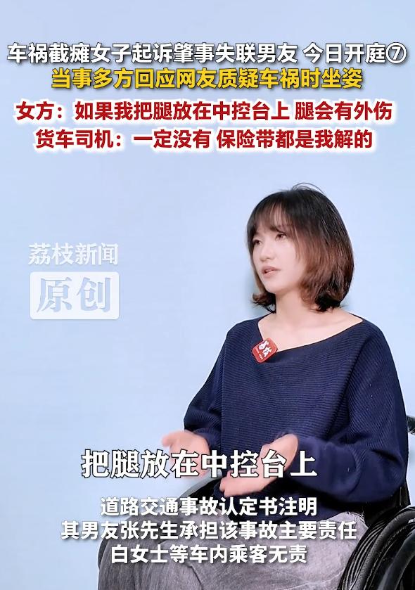 白女士一一澄清,事发时她是正常乘坐副驾驶,货车司机和张先生都能证实,那些恶意揣测,都是对她的二次伤害。她只是一个无辜的受害者,因为男友的交通违法行为,失去了健康、工作和未来,如今只想通过法律拿到属于自己的赔偿,活下去而已。