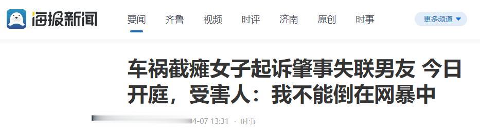 信息来源:海报新闻:车祸截瘫女子起诉肇事失联男友 今日开庭,受害人:我不能倒在网暴中