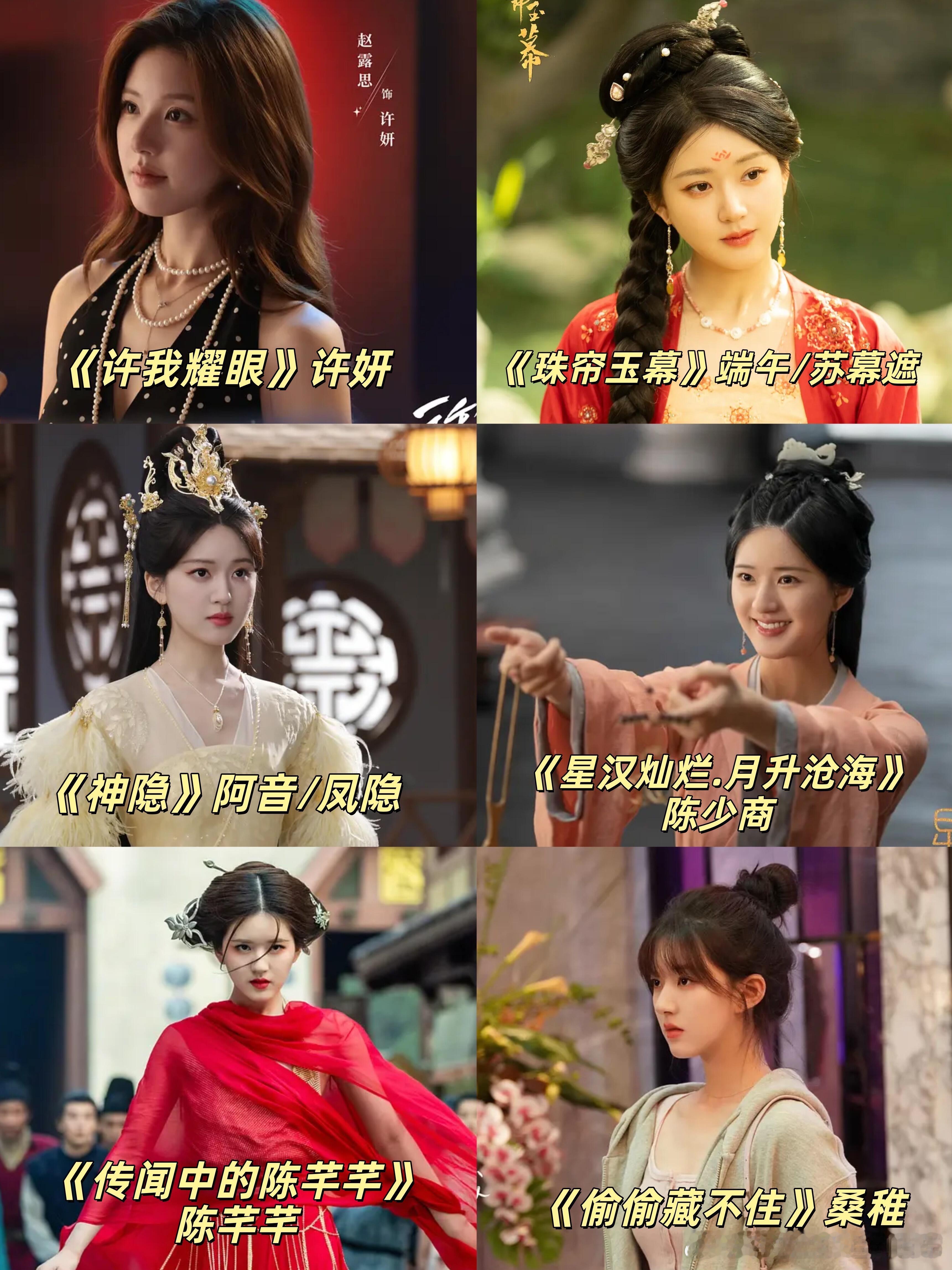 四大顶级扛剧花赵露思应该也算吧!你从哪部剧认识她的?《许我耀眼》许妍、《珠帘玉幕》端午/苏幕遮、《星汉灿烂.月升沧海》陈少商、《传闻中的陈芊芊》陈芊芊、《神隐》阿音/凤隐、《偷偷藏不住》桑稚、《长歌行》李乐嫣、《且试天下》白风夕、《三千鸦杀》覃川/阿满、《哦!我的皇帝陛下》洛菲菲、《我,喜欢你》顾胜男、《后浪》孙头头、《国子监来了个女弟子》桑祈、《天雷一部之春花秋月》雷蕾/春花、《胡同》田枣、《最动听的事》贝耳朵、《一不小心捡到爱》顾安心、《青囊传》叶云裳、