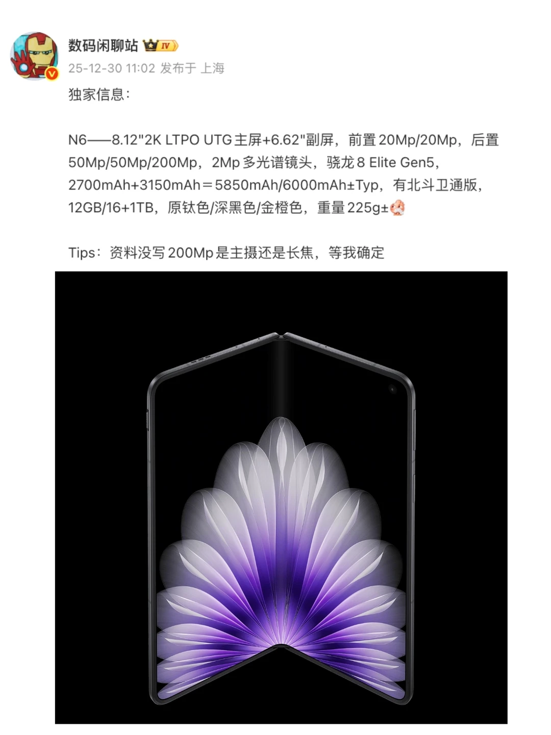 一直以来很多人都关心折叠屏手机铰链的可靠性和耐用性,有意思的是,近期有个叫《Foldy Bird》的小游戏,要通过反复开合折叠屏控制操作,这可以直观考验铰链耐用性,就看折叠屏玩家敢不敢验证一下了~ 其实这两年折叠屏技术已经很成熟了,尤其是铰链方面屡有突破!消息称2026年折叠屏新机技术还有突破,其中苹果首款折叠屏(或名iPhone Fold)计划下半年发布,重点攻克折痕痛点,采用液态金属复合材质铰链,据说可承受数十万次开合以减轻折痕,目标实现“无折痕”视觉体验! 国产折叠屏更卷,爆料称OPPO Find N6同样要冲无折痕,还抢先苹果一步用上UFG不等厚柔性玻璃,搭配全新新一代铰链,做到真无折痕!其他配置也是拉满,骁龙8 Elite Gen5芯片、双卫星通信功能,影像预计升级2亿主摄+多光谱传感器、电池提升到6000mAh以上,相当水桶,期待值可以说拉满了!