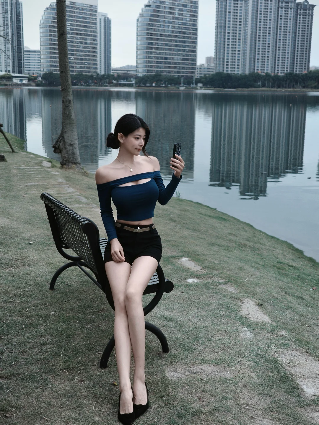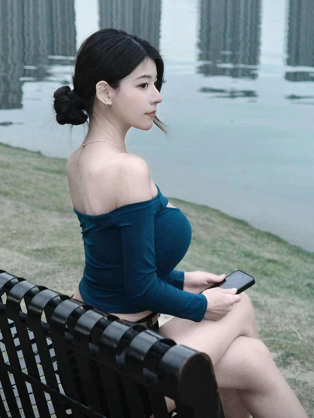 绿裙映翠沐春光葱茏的绿意铺满公园,阳光透过枝叶的缝隙,在墨绿色缎面裙装上投