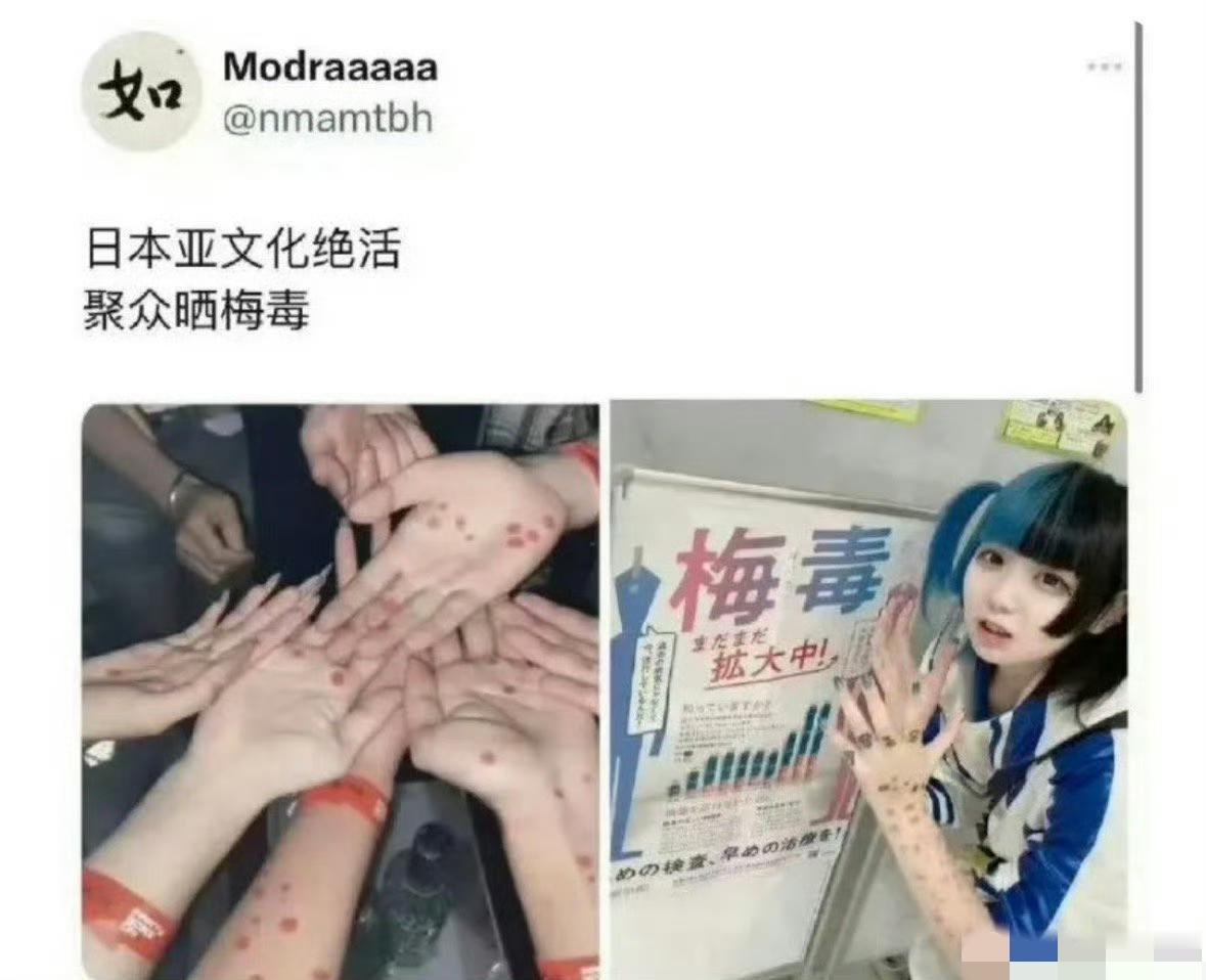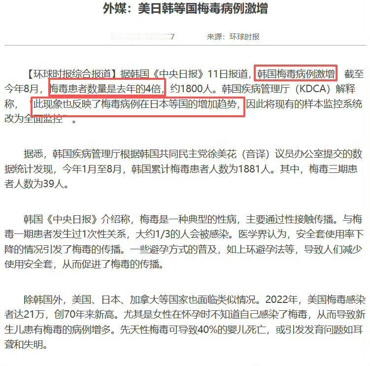 这个数据分布就差把有偿性交易和援交写上去了。 小日子年轻人的文化很极端,会把梅毒当成流行亚文化, 更有趣的是,去年韩国梅毒病例也暴涨了4倍,然后韩国《中央日报》的评论是“反映了梅毒病例在日本等国的增加趋势”,暗示韩国男性爱去日本寻花问柳。 按理说一个看似谦逊、保守、有礼的发达国家,风俗业还这么蓬勃[吃瓜群众]。也挺符合他们年轻人上班时压抑、下班后放飞自我醉倒街头的剧烈反差。