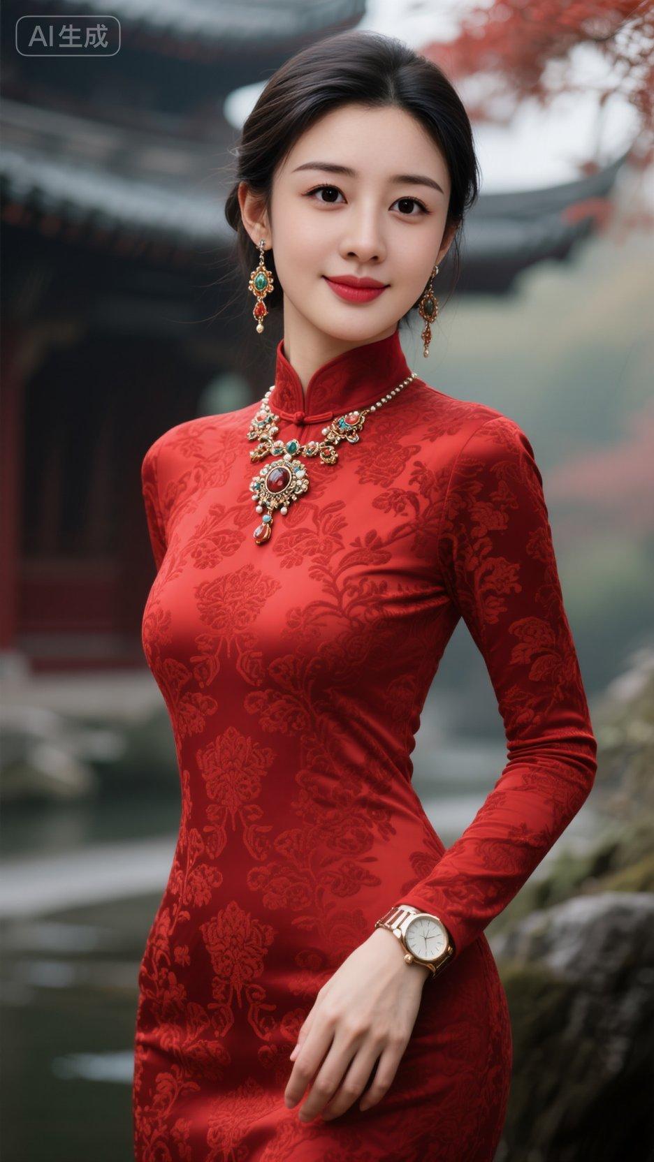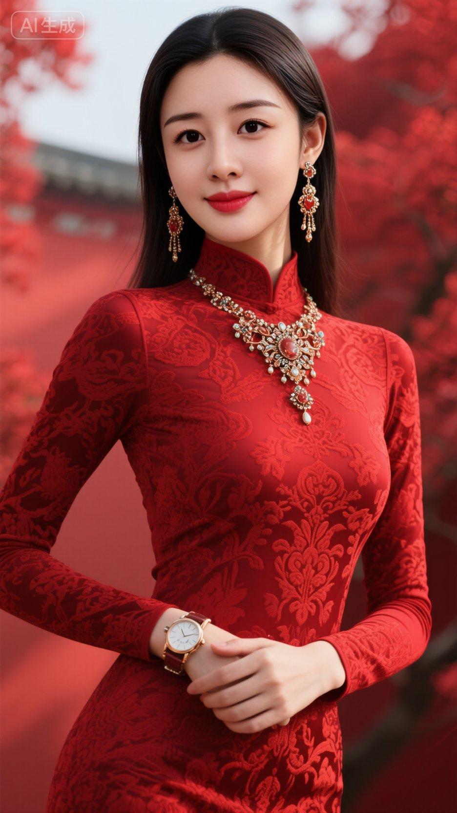 惊艳的东方美人,一袭红色旗袍,尽显古典优雅!