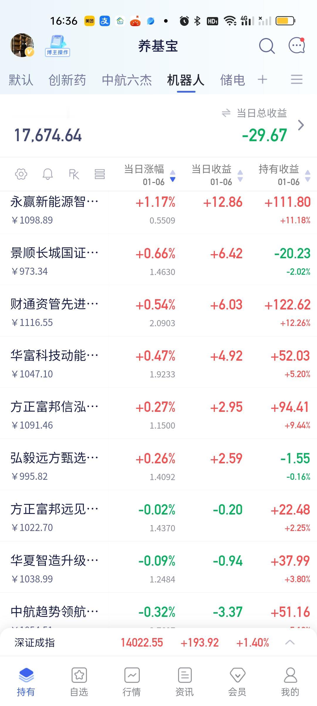 今天最牛的板块还是商业航天,真的奇了怪了,怎么跌怎么杀就是跌不下去。核心个股几百倍几千倍市盈率,主力资金净流出20亿股价也能强势收获涨停。每天如此,真的是活久见了。你能说这里面没有泡沫吗?但就是跌不下来! 今天永赢高端装备预估又是暴涨5.60%,不过昨天好像低开了,今天还不知道会怎样。跌幅最大的是CPO,基本跌幅在1.50--2%之间。也能接受。创新药和机器人今天都是微涨微跌,盈和亏都不会太大。