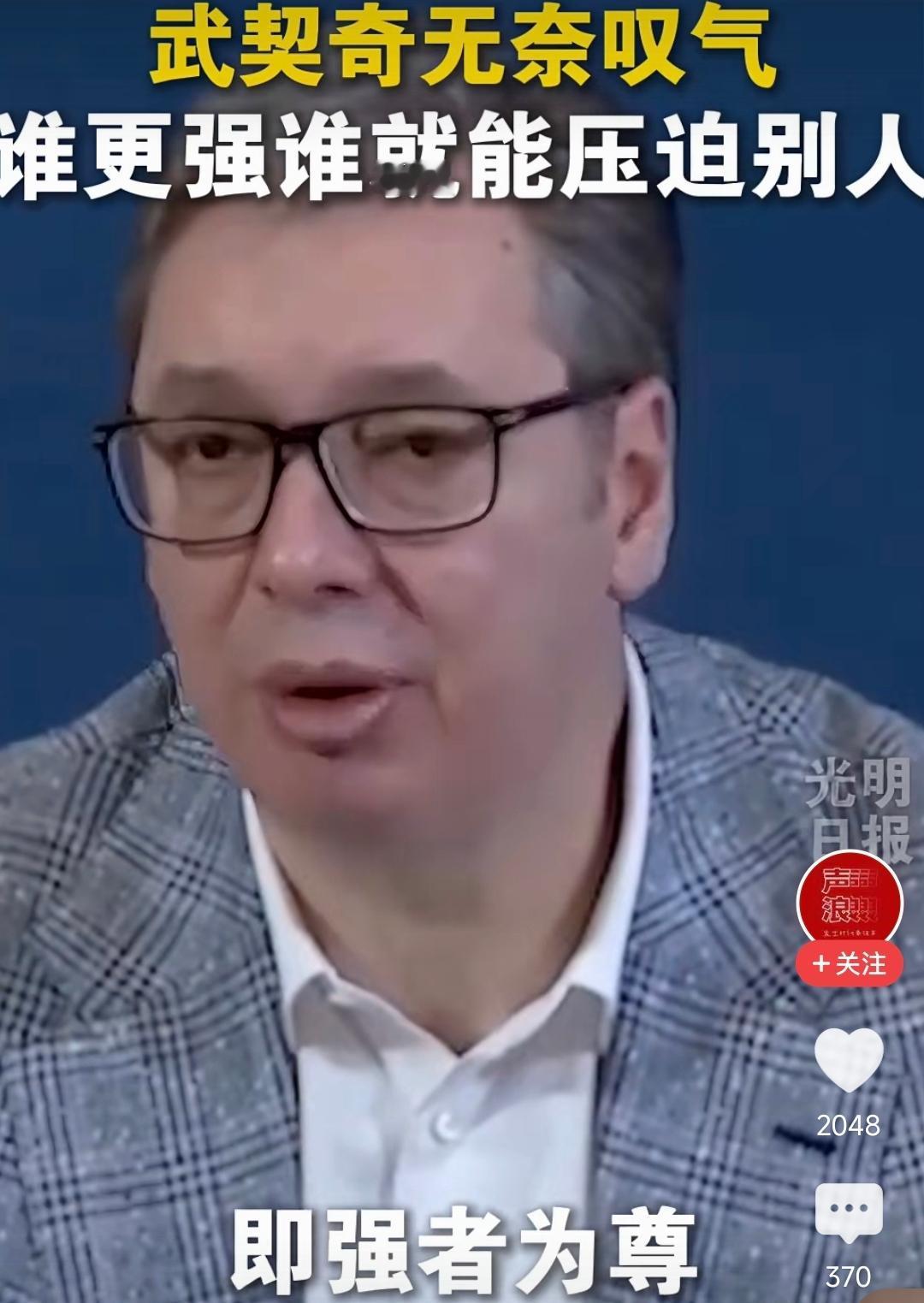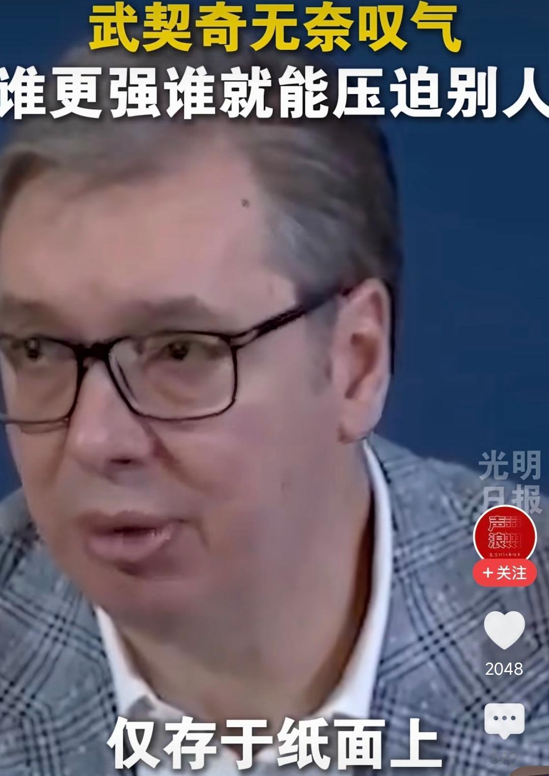 武契奇慌了!看到老美对委内瑞拉的行动后,这位塞尔维亚硬汉满脸无奈地表示:当今世界就是强者为尊,强权法则才能主导一切。 他长叹一口气,摇了摇头:“法律以及联合国的指令成了摆设,仅存于纸面上,根本不起作用。现在是谁拳头硬谁就能压迫别人。” 这些话听着扎心,但句句都是大实话。 尤其是武契奇,他的委屈咱们外人都看在眼里。自己的家被北约摁着脖子欺负,联合国的决议跟废纸没什么两样。 再加上美欧动不动就拿制裁来威胁,国内的事基本都要看别人脸色。他的慌、他的恐惧,不是因为他怂,而是真的没办法,这就是现实。 更可笑的是啥? 真正爱好和平的与诺贝尔和平奖无缘,去看看颁给的都是些什么人。 说白了,这些台面上的奖就是一块霸权的遮羞布,即便强盗戴上和平的帽子,照样还是干着抢东西的勾当! 你说这世界乱不乱?乱。 扯淡不扯淡?扯得毫无章法。 嘴上喊得漂亮“自由民主”,手里却拿着导弹、飞机、军舰干着打家劫舍的勾当。天天说“规则秩序”,结果,人家里有点什么好东西都想据为己有,把小国主权踩在脚下。 别在幻想什么公平正义,联合国管不了美国的霸道,国际法约束不了强权的任性,中小国家在他们眼里,就是想捏就捏的软柿子! 武契奇的无奈,不是一个人的无奈,是所有被霸权欺负的小国的集体心酸! 这个世界缺正义的呼声吗?不缺,缺的只是敢于对霸权说不的力量。在这个不讲规则的世界里,没有实力,注定只能任人宰割!