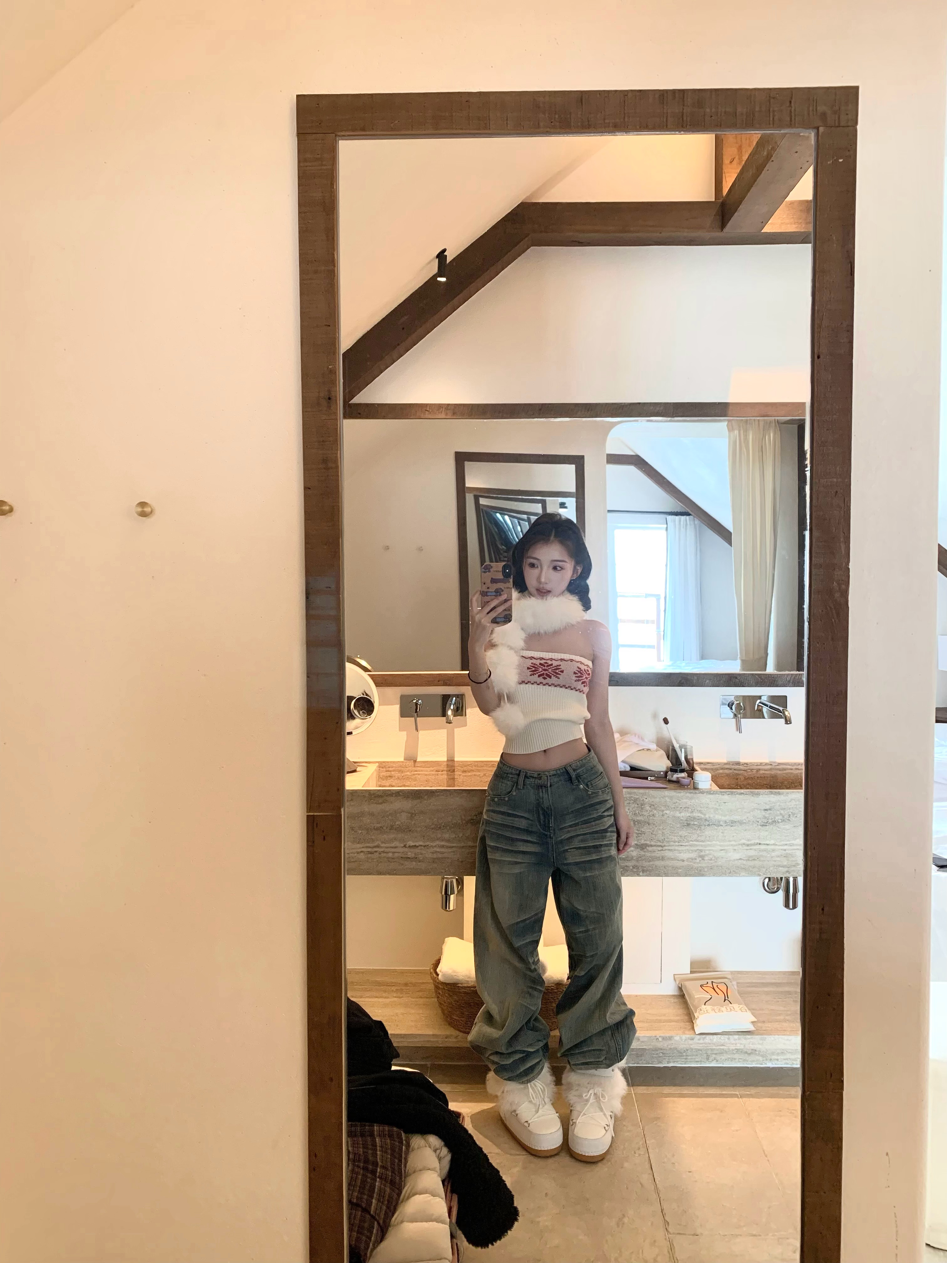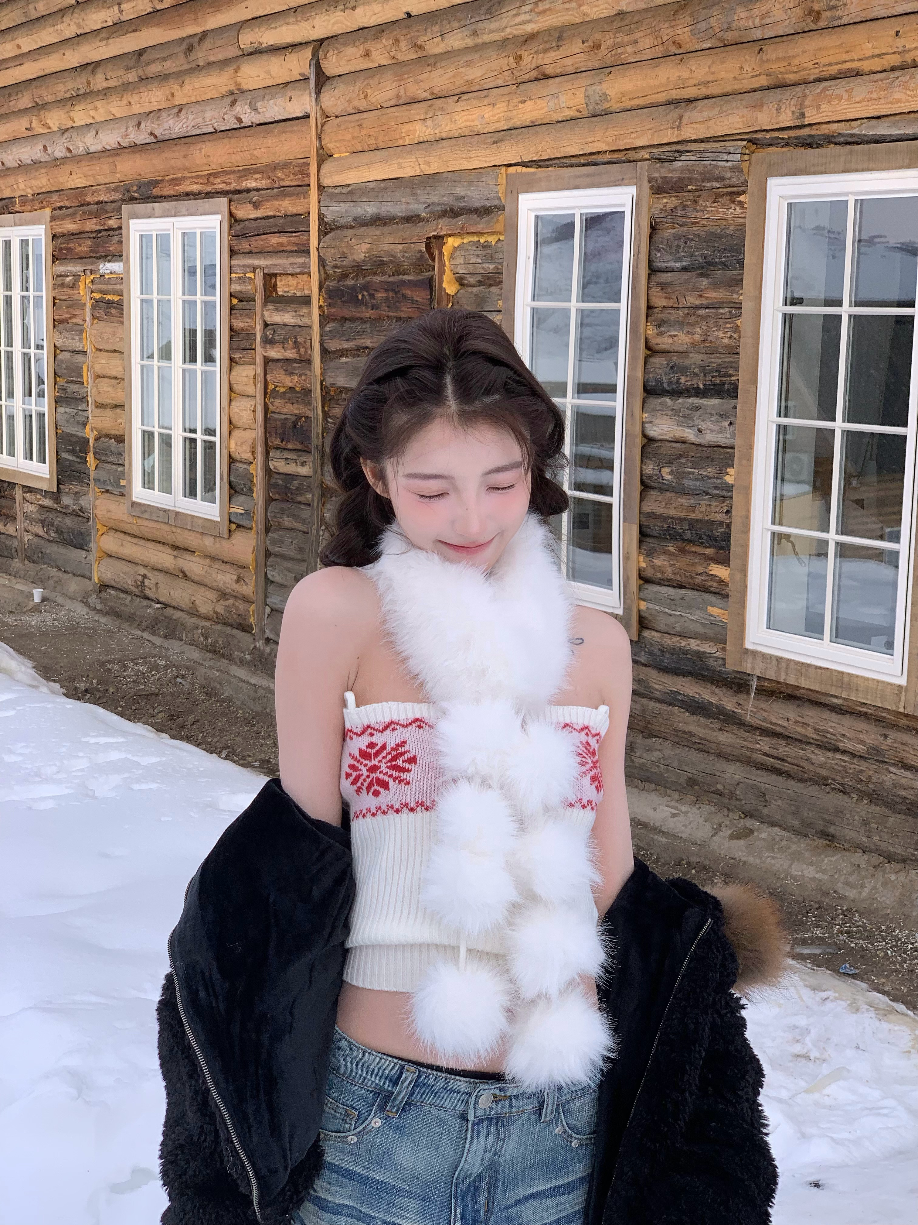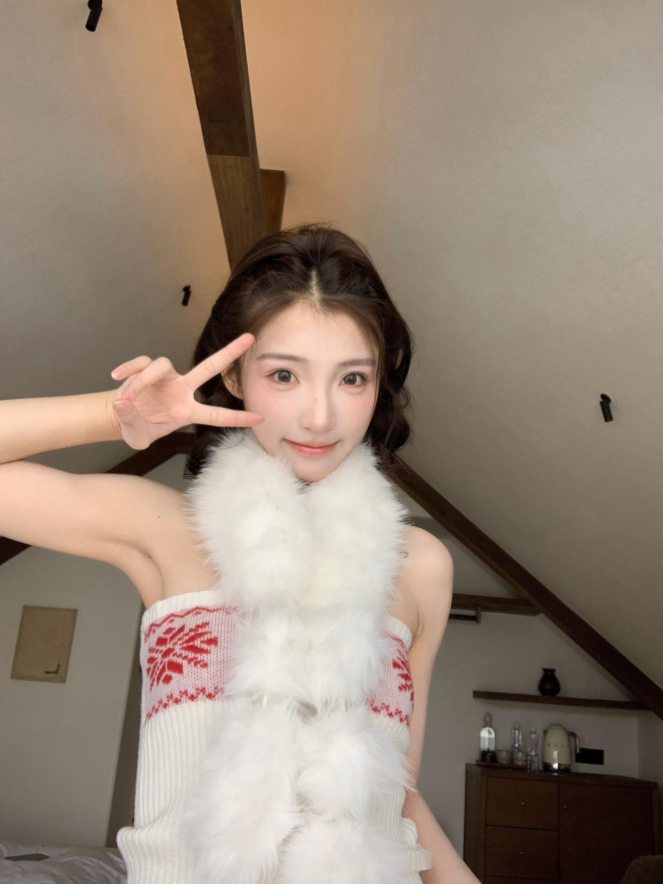 浅绿暖红的柔缓余温墨发松垂时,她是裹了绒光的冬日元气。渐变色毛衣从奶