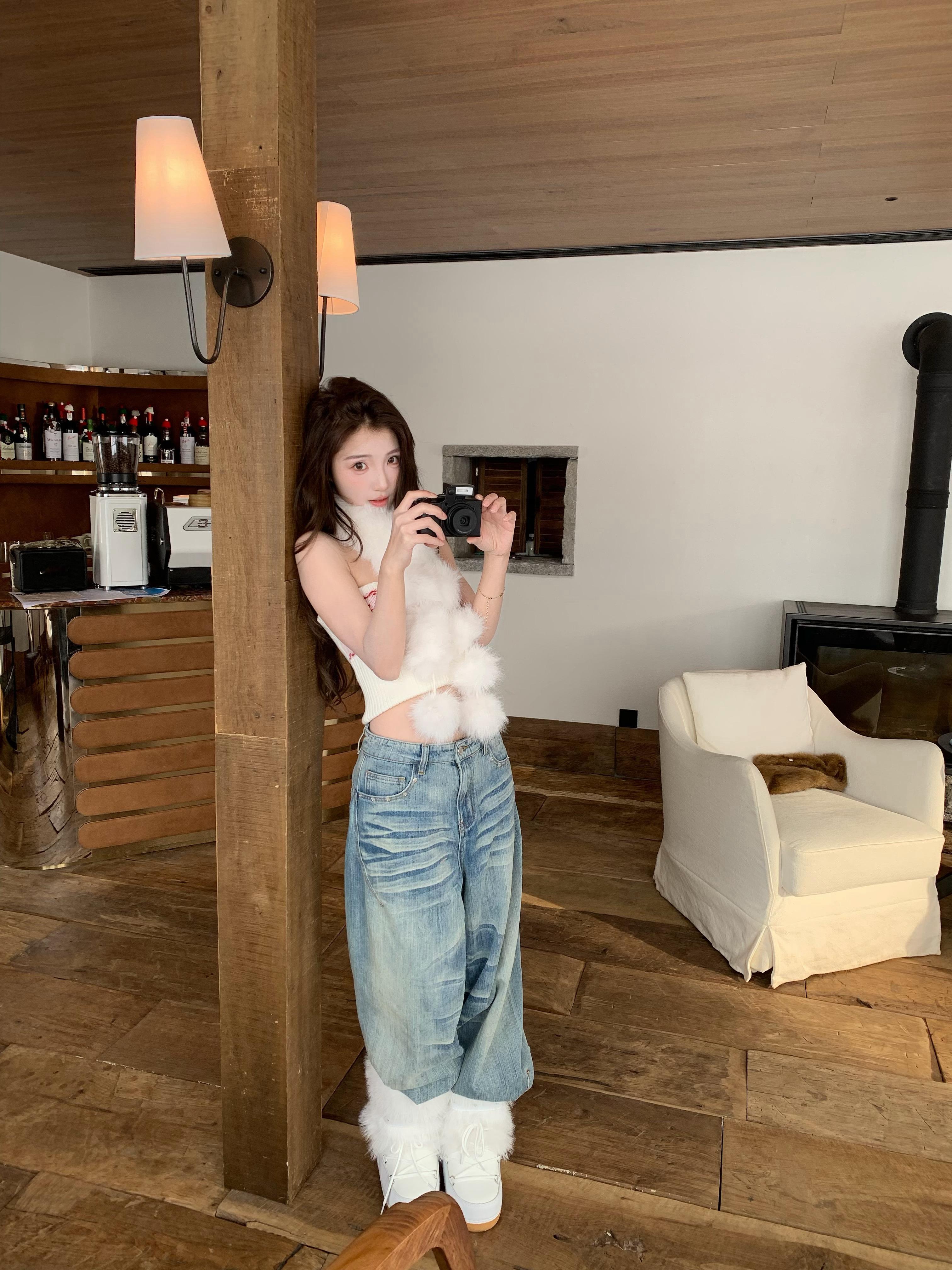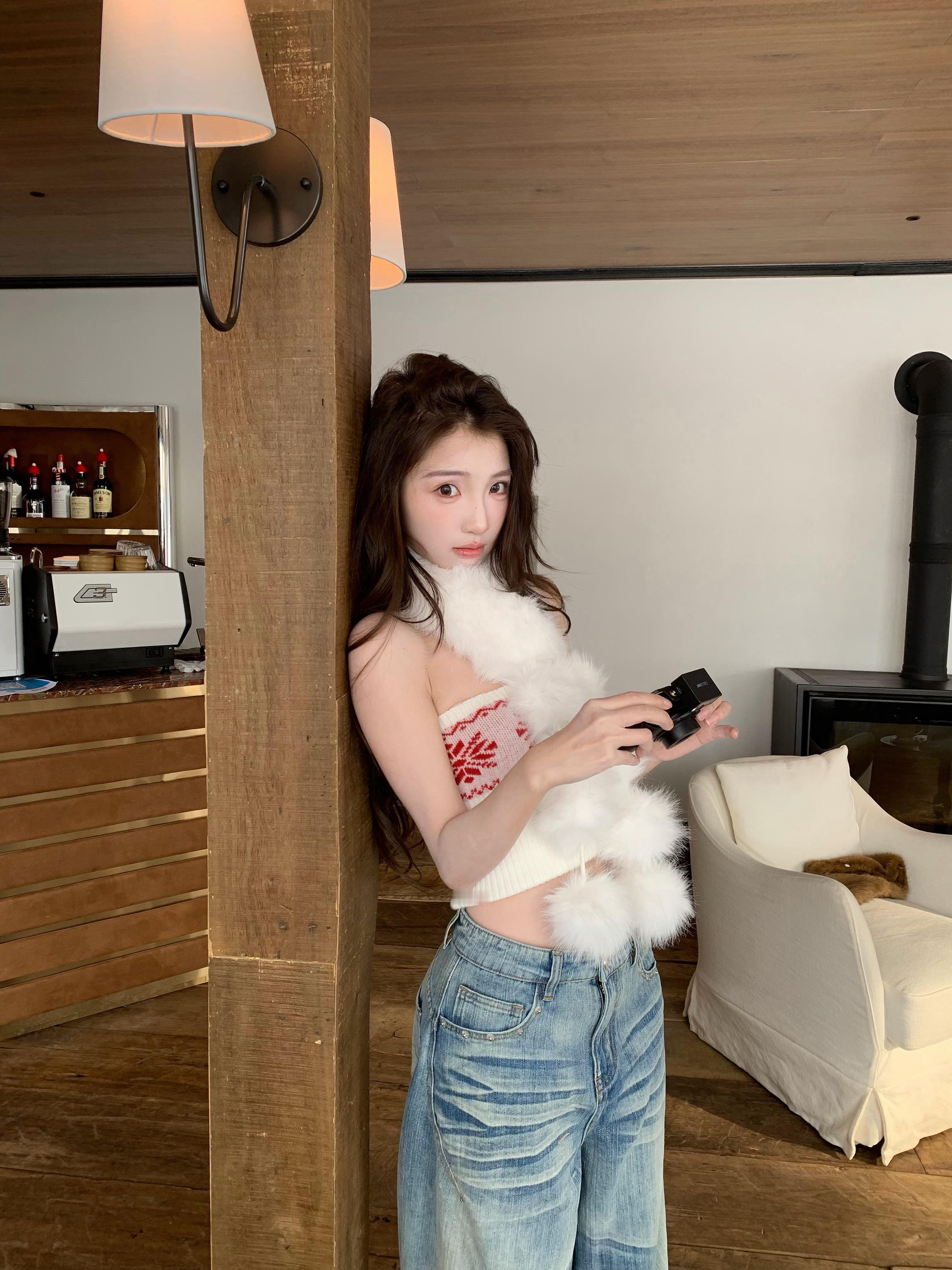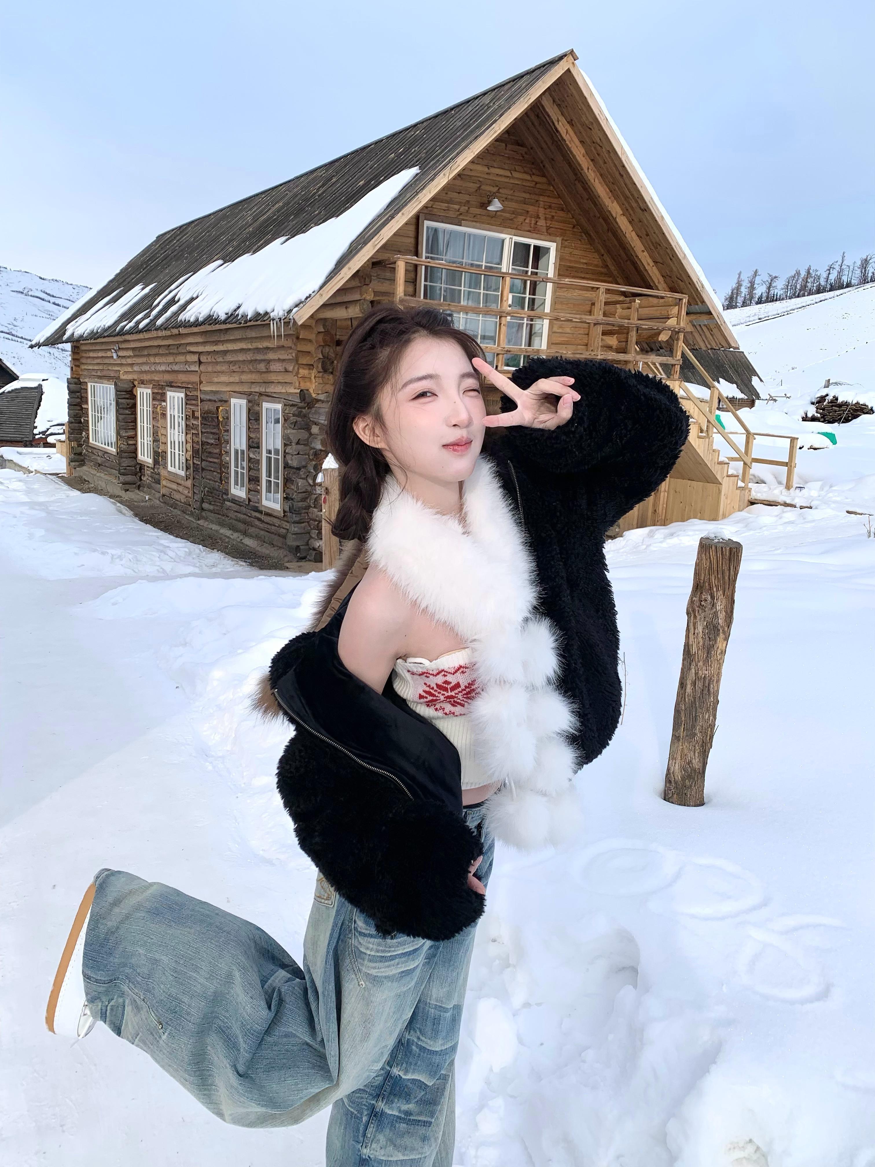 浅绿暖红的柔缓余温墨发松垂时,她是裹了绒光的冬日元气。渐变色毛衣从奶