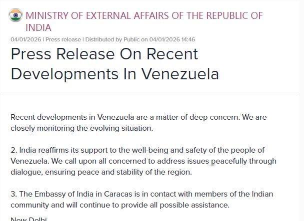 莫迪也出来说话了!1月4日,印度发表外交说明表示,委内瑞拉近期的局势发展令人深感关切,印度正密切关注事态发展。印度的声明写得相当克制。 1月3日凌晨,美国发动大规模军事行动,直接抓捕委内瑞拉总统马杜罗夫妇,把人带到纽约面对旧的毒品和武器指控。这事一出,国际上炸了锅,拉美国家带头谴责,联合国秘书长也发声说这违反国际法,很多国家觉得这是对主权的粗暴干涉。印度这边,外交部4号赶紧发了个声明,说委内瑞拉最近的事态让人深感担忧,正在密切关注。 声明就这么几句关键点:先表达对局势的担忧,然后重申支持委内瑞拉人民的福祉和安全,呼吁各方通过对话和平解决问题,确保地区稳定。最后还说驻加拉加斯大使馆在跟当地印度人保持联系,提供必要帮助。整个声明没提美国半个字,也没直接批评谁,就是走中立路线。 这态度一看就很谨慎。印度这些年想在全球南方国家里当老大哥,之前还办峰会拉拢大家,现在关键时刻却没站出来明确反对美国行动。拉美那边好多国家直接说这是侵犯主权,印度却只说呼吁对话。很多人觉得这有点尴尬,一方面不想得罪美国,毕竟美印在贸易、科技、军事上还有不少合作没谈拢,关税谈判卡着呢,武器进口也靠美国;另一方面,又怕在南方国家里丢分,显得没担当。 这事对印度外交是个考验。想平衡大国关系可以理解,但总这么模棱两可,南方国家信任度会不会降?以后推全球南方战略时,阻力可能更大。国际上,拉美抗议浪潮起来了,联合国安理会要开会讨论,中国、俄罗斯都强烈谴责美国。 总的来说,印度这份声明就是典型的稳字当头,不想卷太深。事件才刚开始,后续发展谁也说不准,但这已经让很多人看到大国干预的现实。希望局势别再恶化,通过谈判解决问题才好。