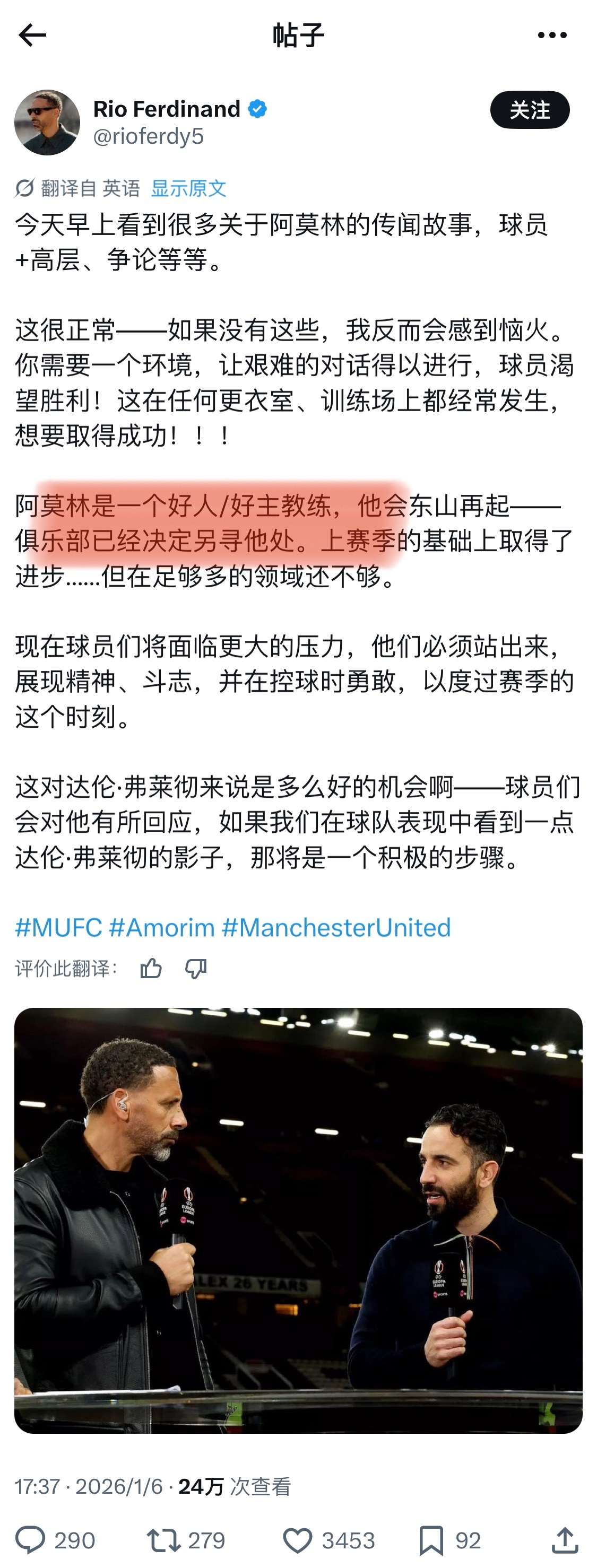 加纳乔还点赞了🤣🤣🤣阿莫林被解雇