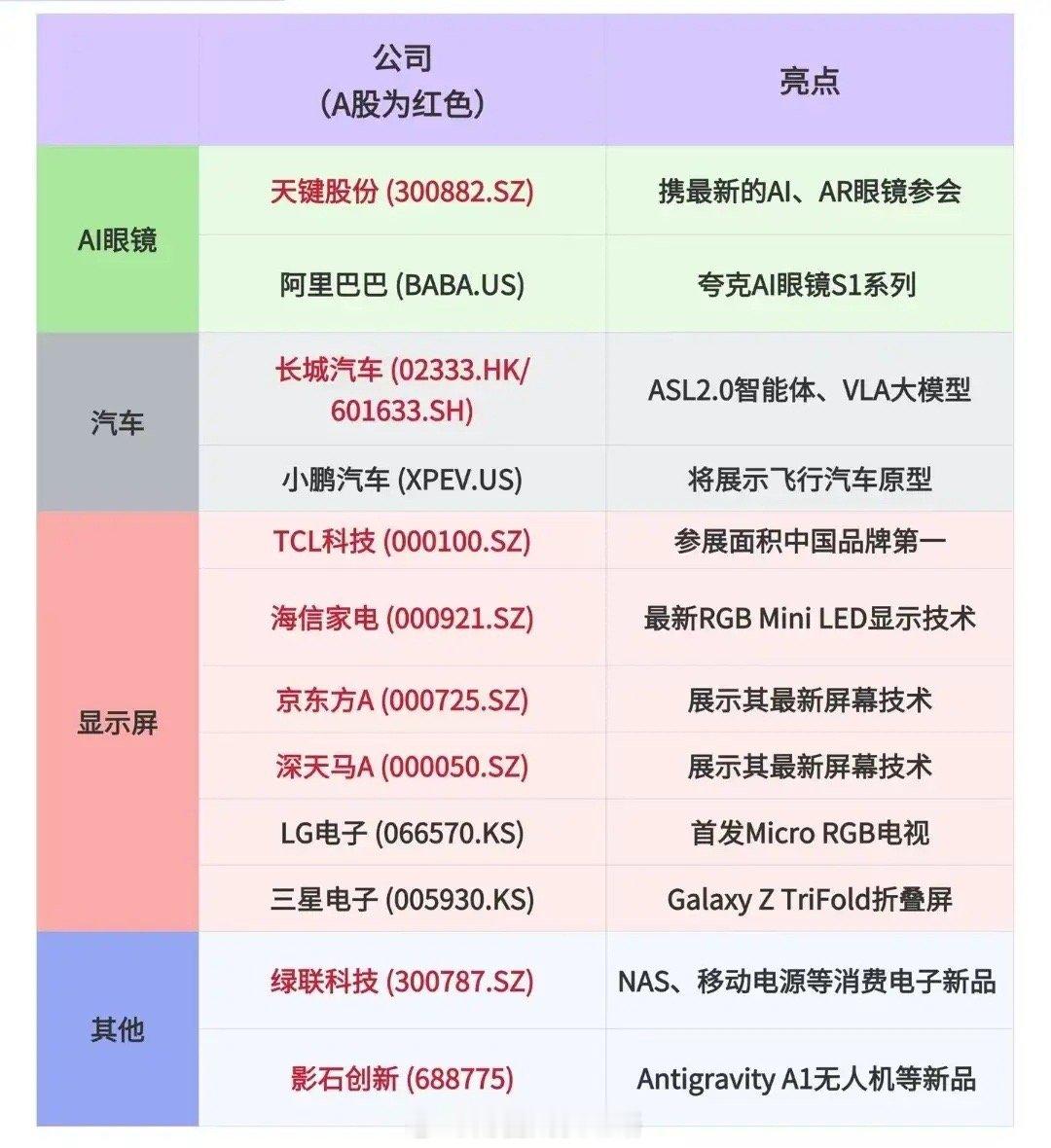 2026年CES(国际消费电子展)于1月4日至9日在美国拉斯维加斯举办,本届展会以AI与机器人为核心主题,成为观察全球科技产业趋势的关键窗口。本次大会参会中国公司有哪些?2026年CES参展企业阵容曝光。重磅演讲环节,英伟达、AMD、联想集团等科技巨头将分享前沿战略,黄仁勋还将与杨元庆展开对谈;机器人赛道成焦点,特斯拉携第三代人形机器人Optimus-3亮相,上纬新材、奥比中光等A股公司也将展示人形机器人、3D相机等新品;AI眼镜、汽车、显示屏等领域同样亮点纷呈,天键股份、长城汽车、TCL科技等A股企业分别带来AI/AR眼镜、智能驾驶技术、新型显示产品,绿联科技、影石创新也将展出消费电子、无人机等新品,A股公司在全球科技舞台的存在感持续提升。理财有风险入市需谨慎!