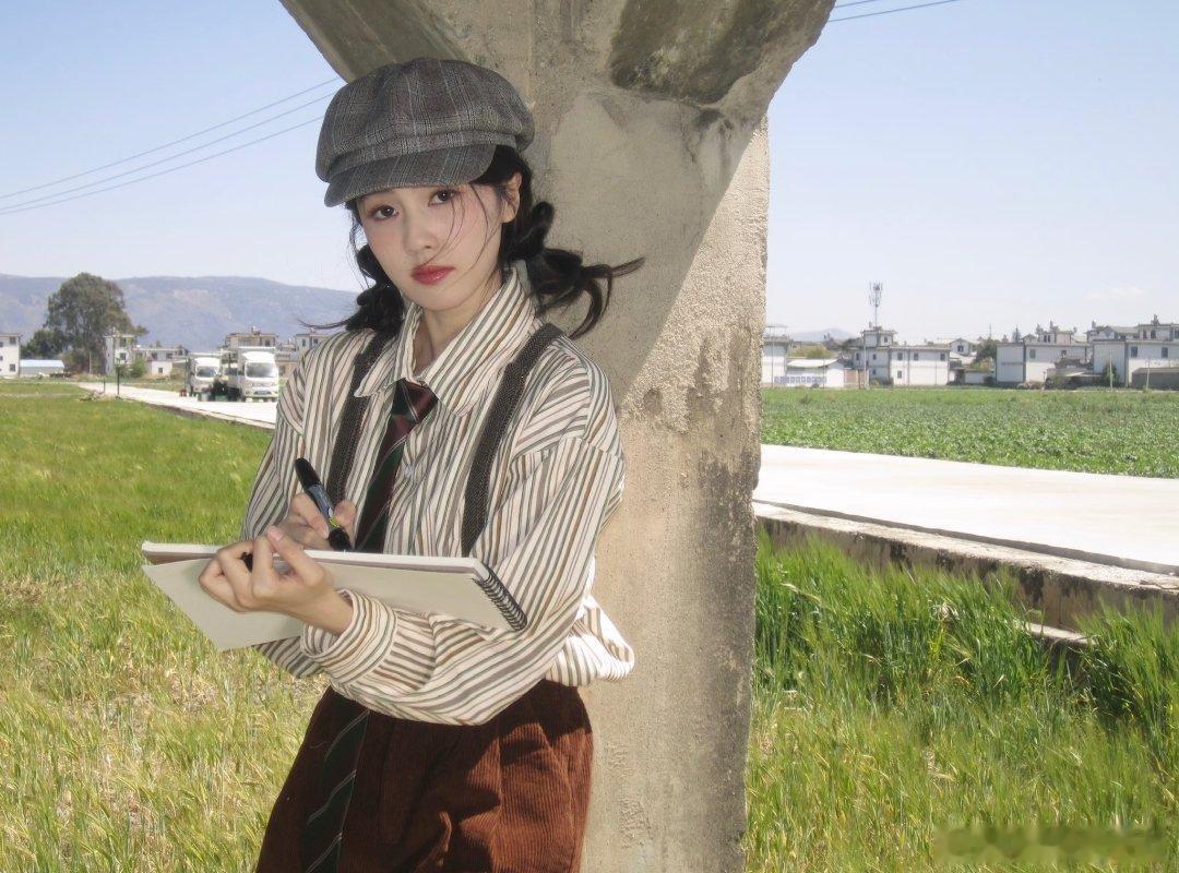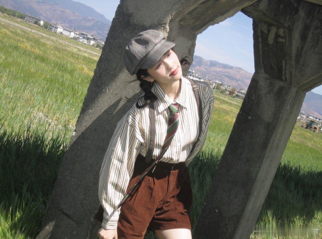 白鹿条纹衬衫与背带短裤的一组写真~