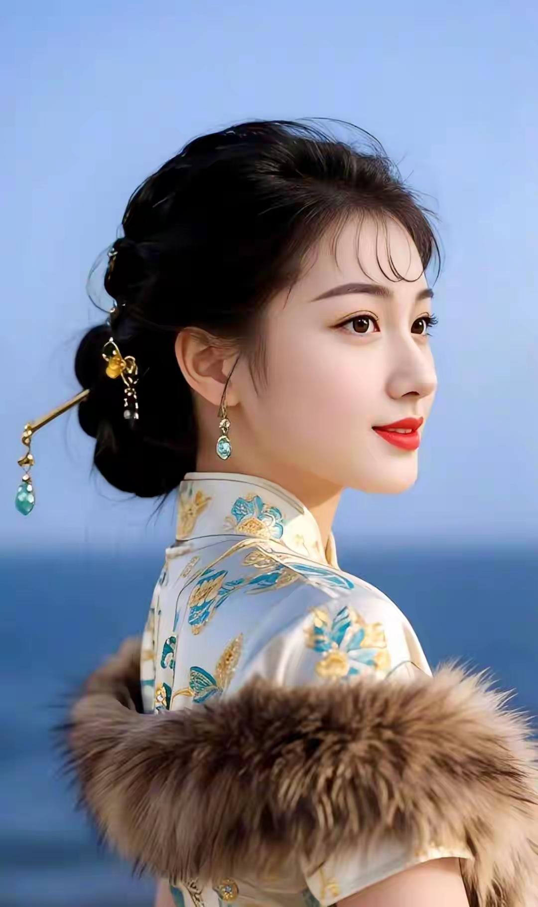 在那碧波湖畔,一位身着青衫的女子,衣袂随风飘动,与这美景融为一体。她的美,在这宁