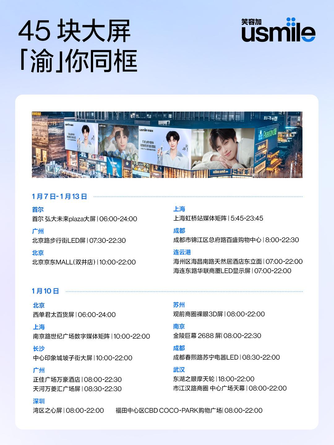 usmile笑容加品牌代言人梓渝梓渝usmile线下大屏投放解锁,45块大屏,还