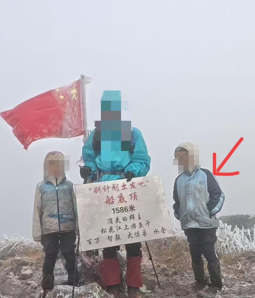 自己捂得严实,孩子穿校服差点失温!一家长带俩小孩徒步船底顶迷路了,崩溃大哭。 船底顶也叫“广东毕业线”,在粤北山区,海拔不高但很难走。山石陡峭气温变化大,途中有很长的乱石坡。 爷仨无帐篷,没经验,遇大风,迷路两小时左右。 幸亏遇到其他徒步者,睡到别人帐篷,盖别人睡袋,吃别人补给。 图二登顶照,中间男子是好心驴友,图一那张据称才是俩孩子的家长。 徒步也是有门槛的,不是有腿就能行,这是遇到好心驴友帮助,才没出大事啊!