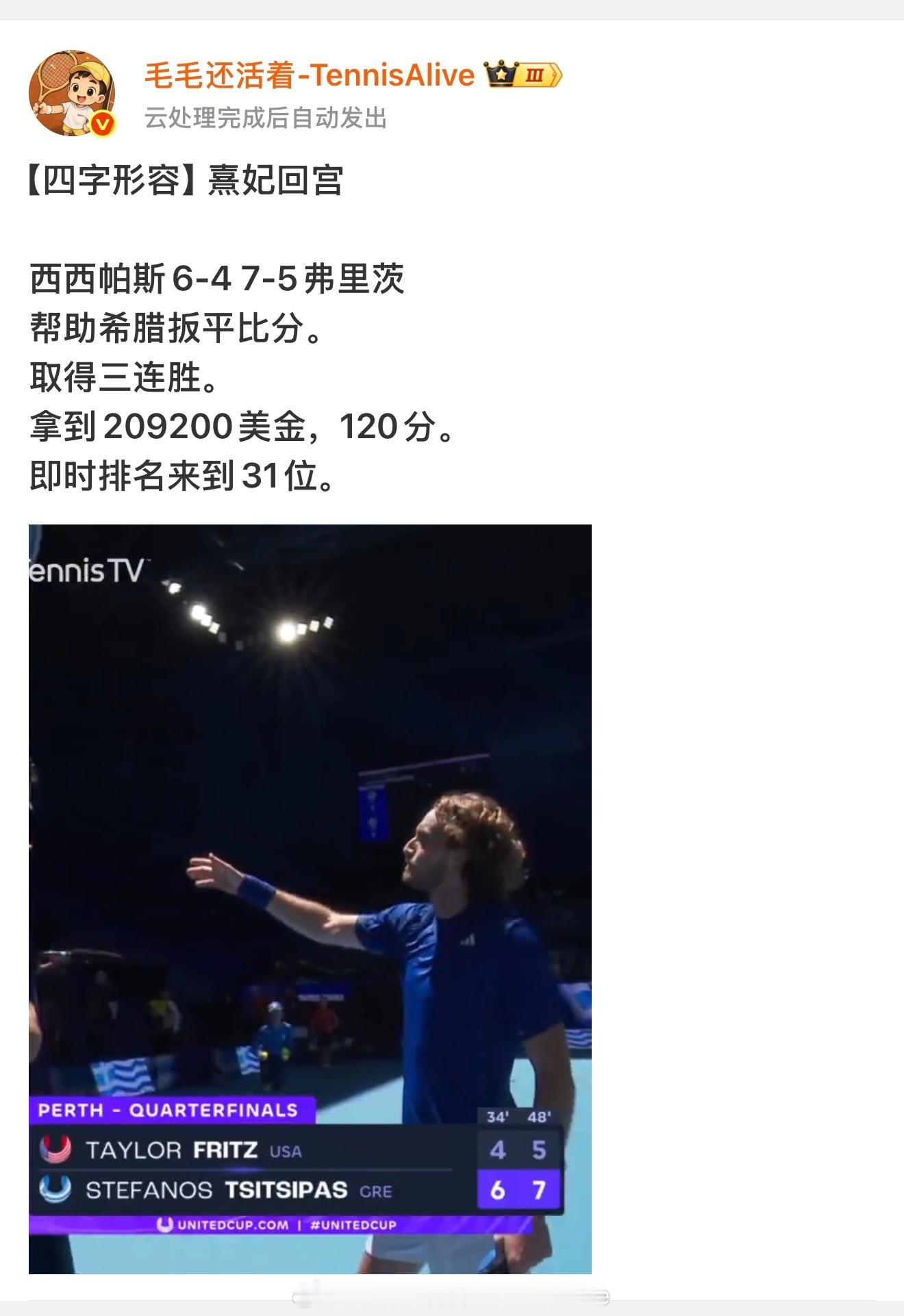 【四字形容】科斯蒂亚击败奥胖科斯蒂亚6-2 7-6奥斯塔彭科【14】打进布里斯班
