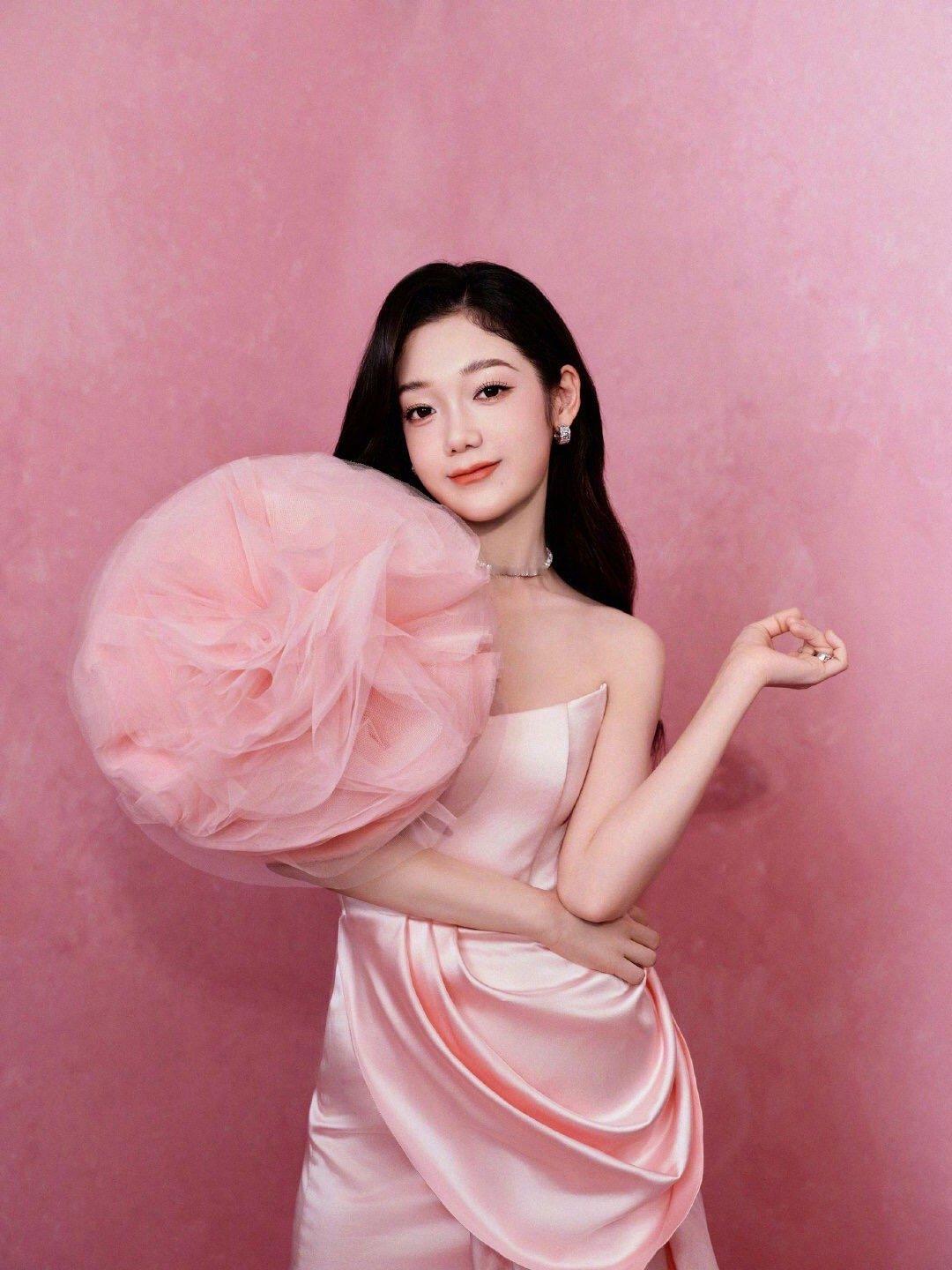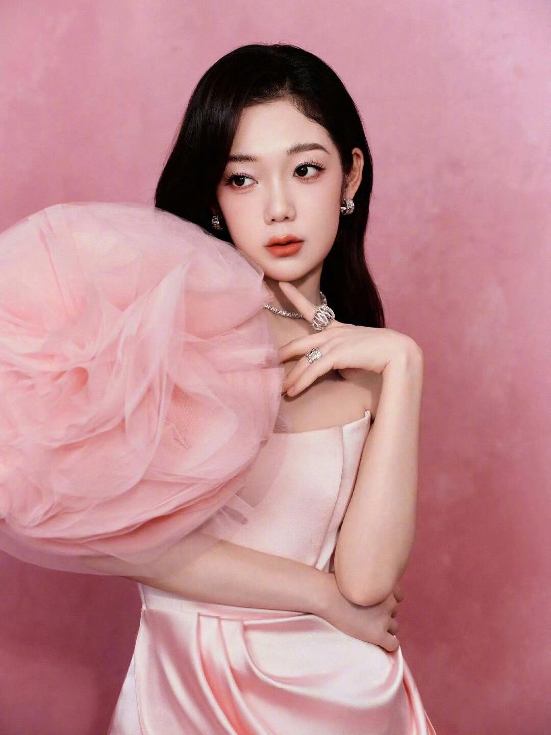 希林娜依高粉色缎面裙俏皮灵动希林娜依高身着一条粉色缎面裙,抹胸剪裁勾勒肩颈线条,垂顺缎面与立体纱花形成质感对比。光滑的缎面、轻柔的纱花再搭配细腻丝缎鞋带,造型直接打破单调,营造出“温柔中带着俏皮”的少女氛围,完美平衡仪式感与灵动气息!