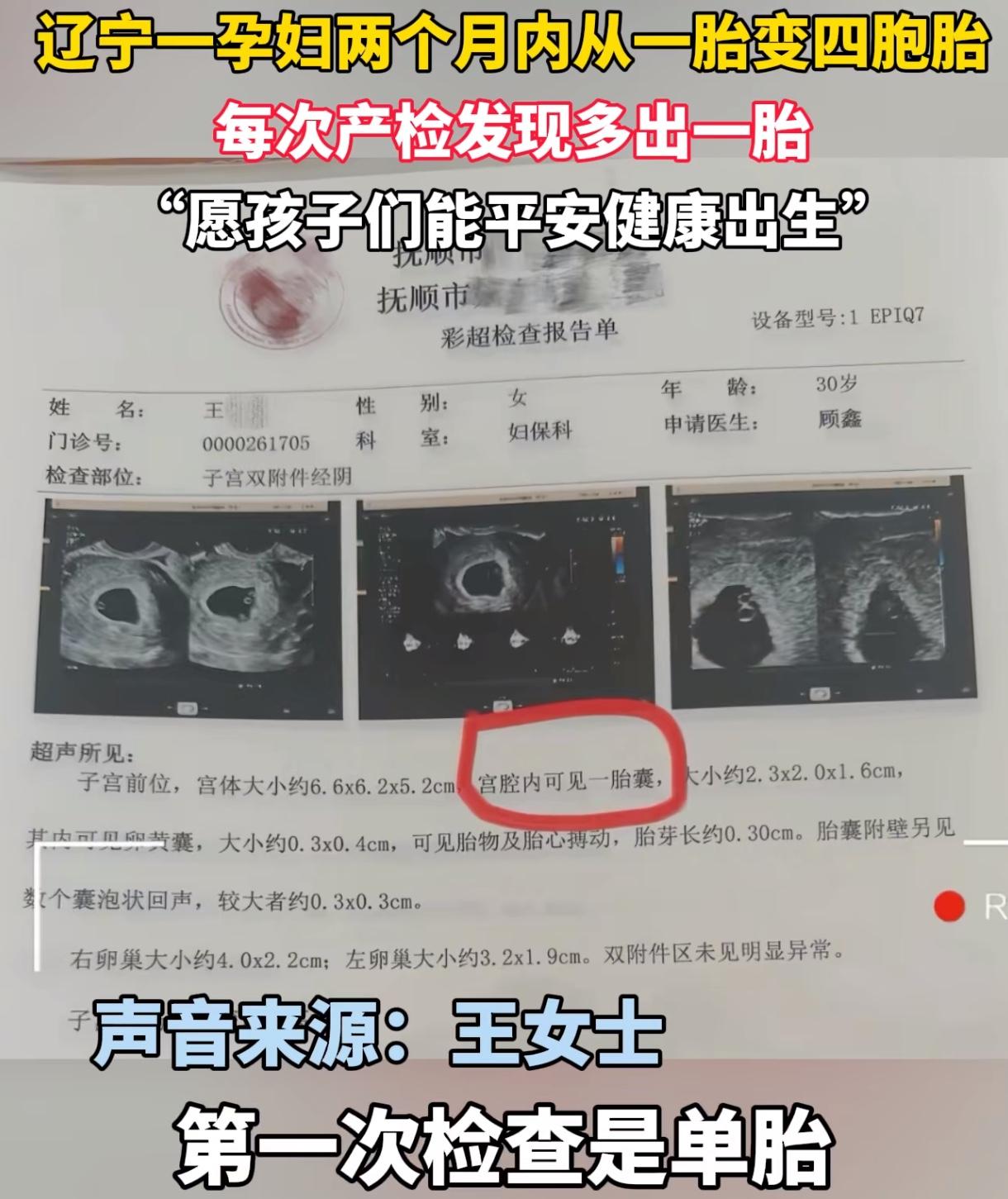 天降四胞胎? 辽宁孕妈遇千万分之一奇迹,无心畸胎却成致命隐患 辽宁抚顺30岁的