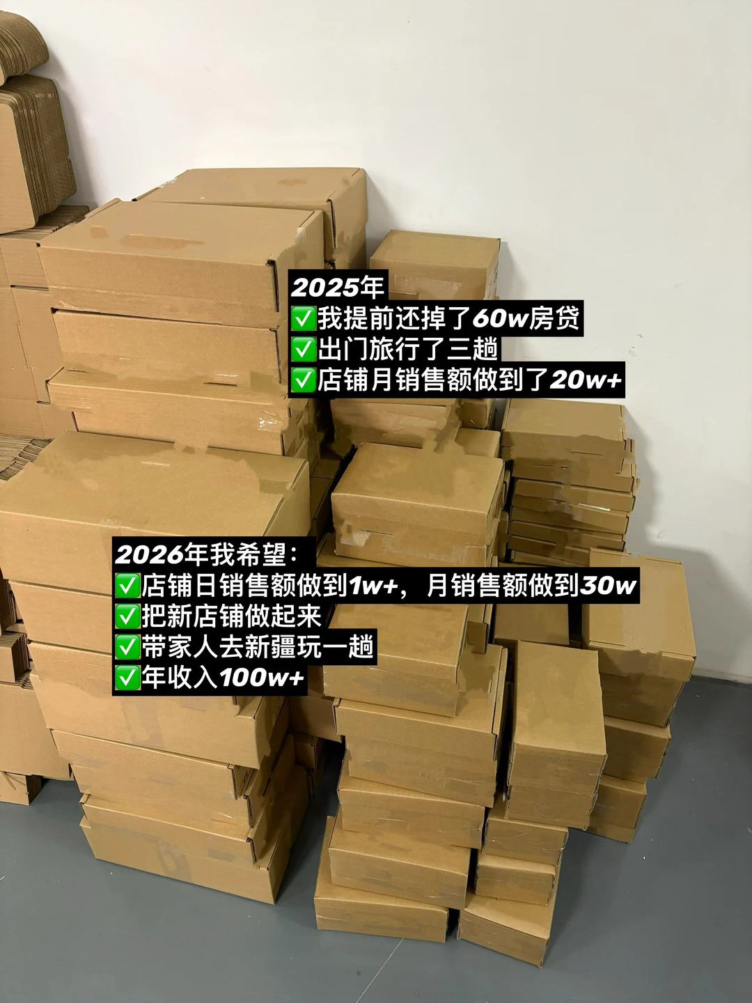大家好,我是薇薇,2025年对我来说是非常具有里程碑的一年,因为25年我辞职了!!!之前我一直是一边上班一边弄店铺,但25年因为店铺变得越来越忙碌,所以我辞职了,自此以后我开启了只工作不上班的人生, 25年跟24年一样,我一共有三份收入来源:工资+网店+自媒体,我是21年从上上份工作裸辞后全职开始做电商的,但是由于我刚开始经营不善,亏损了很多,入不敷出的情况下我去找了上份工作, 这份工作离我家车程10分钟,朝九晚五不加班不出差,五险一金都正常缴纳,年末还有2个月工资的年终奖,上班也不忙,可以让我兼顾到我的网店,很长一段时间我觉得这份工作真的太完美了,我想过要在这家公司干到退休,但没想到计划赶不上变化…. 5月搬入仓库后,我的电商事业就开始进入正轨了! 第二份收入是我的网店收入,今年我的🍑店和店销售额一起做到了220w+,21年刚开始开店的时候我怎么也不会想到,四年后我能做这么多销售额,真的太不可思议了, 年初我给自己定的目标是到年底的时候做到日销售额1w,月销售额30w,很可惜今年没实现这个目标,今年最高销售额是8月的26w, 今年电商还出了一个大事就是税务开始正规化了,本来之前做电商我想的是越多越好,但今年开始我想的是店铺年销售额做到不超过500w,保持小规模纳税人的状态,500w的年销算下来日销售额大概是在13698元,所以我准备把日销售额控制在这个区间, 我感觉这个目标还是可以实现的,总之2026年还要继续加油! 因为单店要控制销量,所以为了销量增长就必须再多开店,25年我又新开了4家店铺,但目前经营了几个月下来,我发现我一个人还是有点弄不过来,目前我准备专注一家新店的运营,其它三家暂时先放一放, 我理想中的自己是:手上有多个小而美的店铺,每个店铺的销售额都在500w以内,然后年收入能在200w左右哈哈哈哈, 对了,今年还有偶尔几个日子店铺日销售额过w了,这是值得庆祝的一件事! 我的第三份收入是自媒体,25年的自媒体到手收入一共是7.4w, 从年初5.9w粉到现在7.6w,很感谢大家这一年的陪伴,接下来在我自己成长的同时,我还会努力的给大家分享我的一些电商经验,希望能帮助到大家, 有的时候收到朋友们留言说坚持不下去的时候就会来看一看我打打鸡血,我觉得特别感动,感觉自己还还挺有用的hh, 希望2026年我们都能一起越变越好!