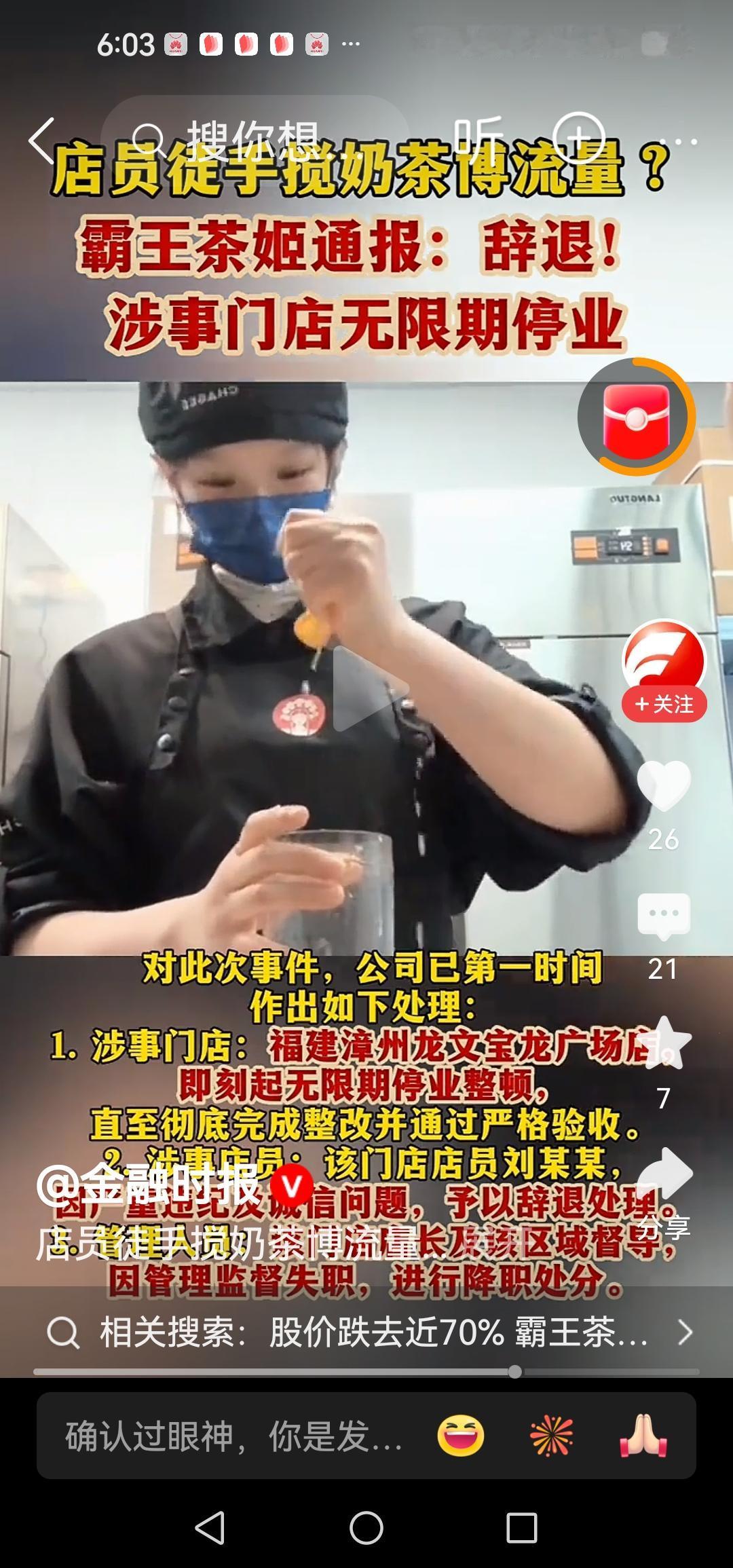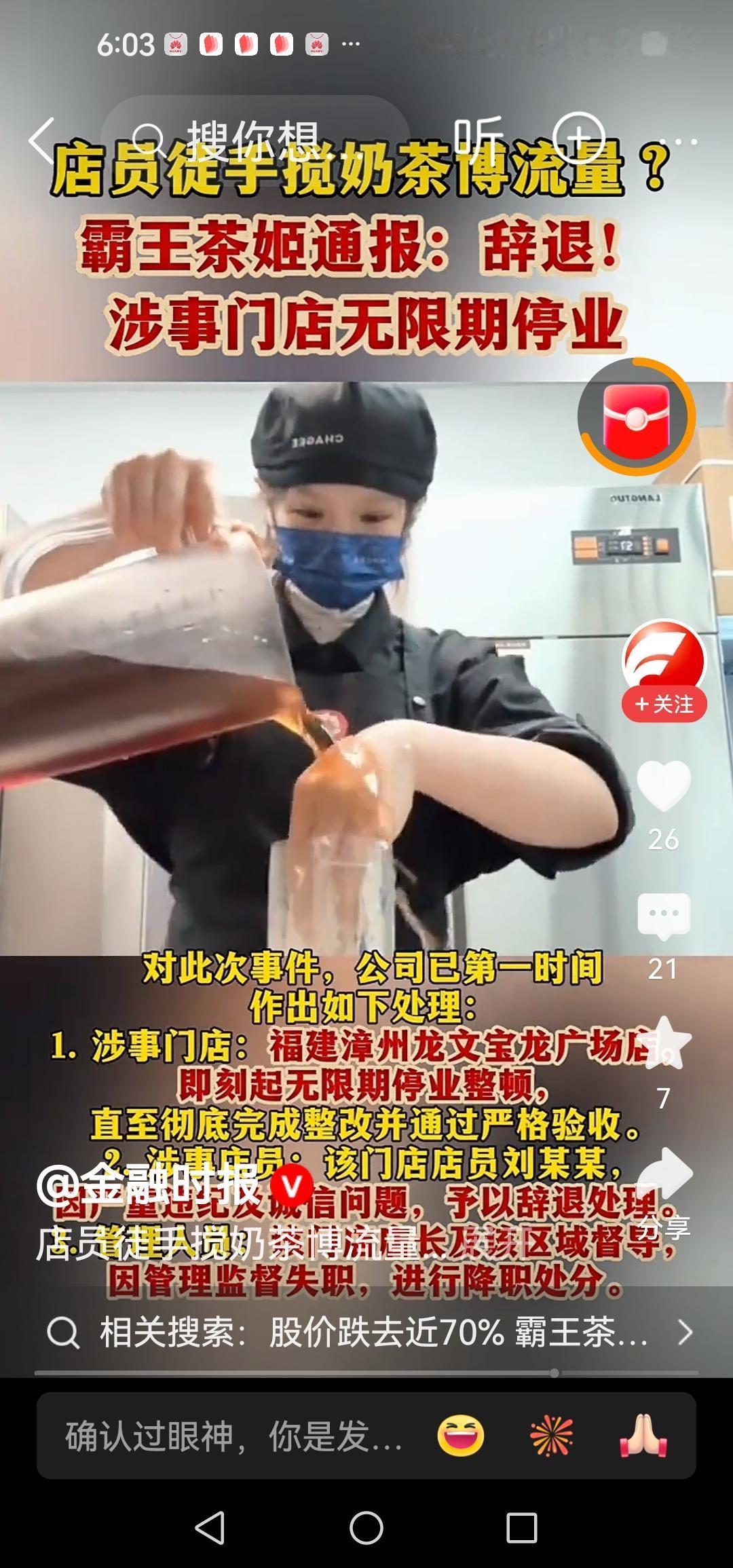 霸王茶姬手打奶茶视频一出, 想起还有那蜜雪冰城,它们的股价会不会跌跌一点点点? 很佩服那些买奶茶饮料股票的人,一个黑事件再曝一个黑事件,就可以让股价跌跌不休,甚至崩盘了。 还有个绝味鸭脖之类的股票,一个做熟食的小贩也上市,好笑,炒上天后现在变ST了,买这种票的人心都痛得无法呼吸了。 某天就不定退市了,所以有这种票的赶紧抛了吧,否则死得连渣都不剩下。