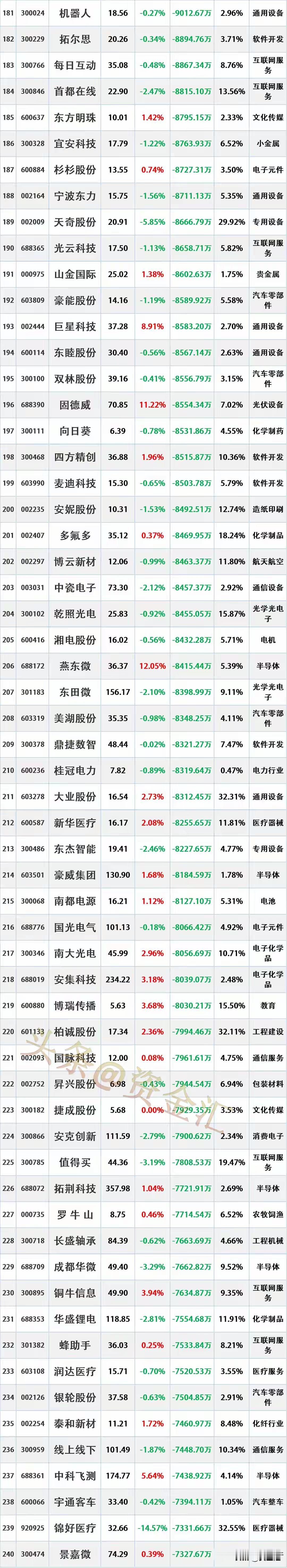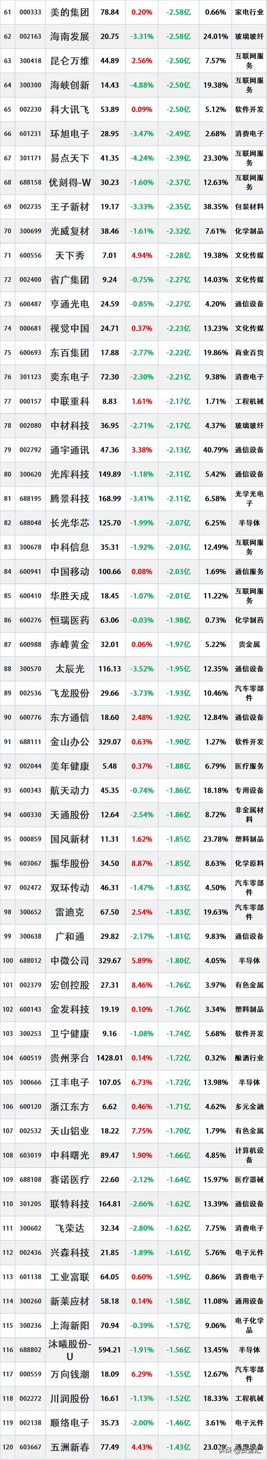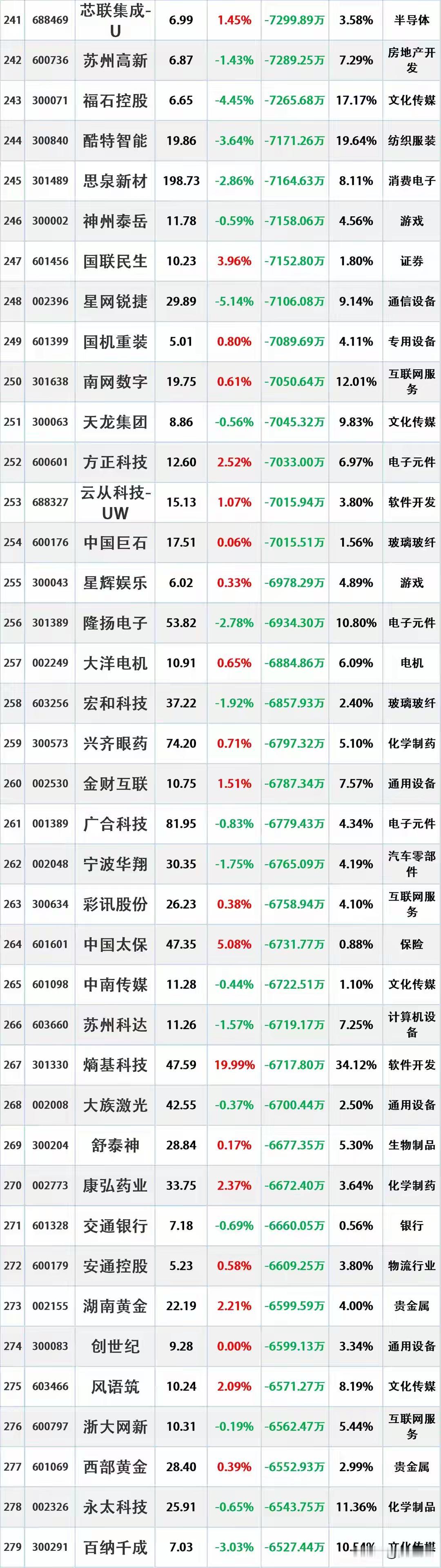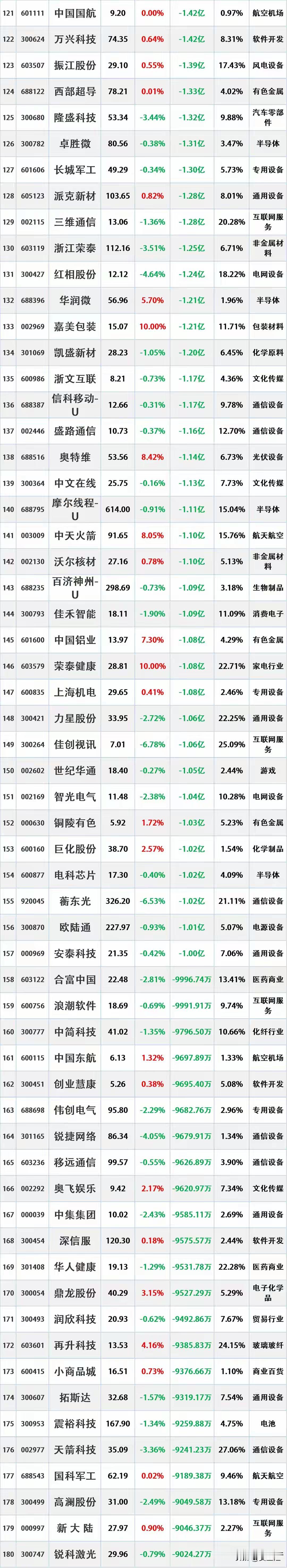 尾盘资金出逃,2026年1月6日主力资金大幅流出的股票名单。 资金流出是指在一定时期内(如一天、一周等),主动卖出某只股票的资金量大于主动买入该股票的资金量。主动卖出是指投资者以买方的报价直接成交,显示出投资者对该股票的消极持有或抛售意愿。