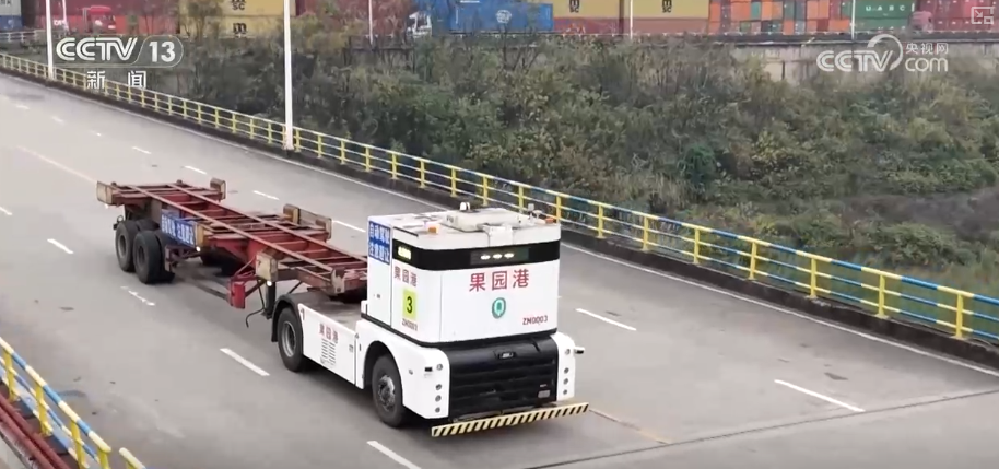 这些白色的卡车就是果园港的无人驾驶的集装箱卡车,通过5G和北斗卫星,它能够自动规划路线、躲避障碍,并且能够精准停靠到它要去的吊装点位下。中央调度系统就像交通大脑,统筹所有的车辆和吊机,避免拥堵和等待,而整个码头就像一个巨大的智能工厂。