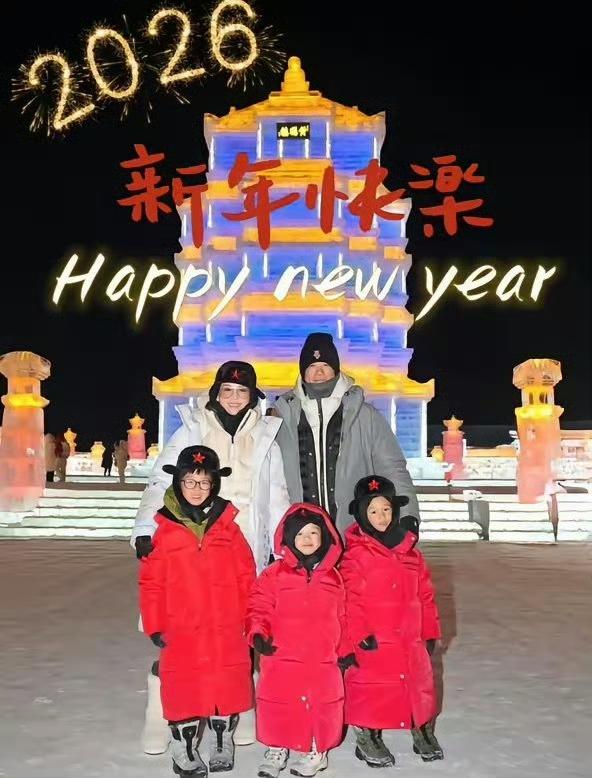 胡杏儿一家五口打卡哈尔滨冰雪大世界啦! 她和丈夫李乘德带着三个儿子裹得严严实实,孩子们穿同款红色厚外套超吸睛,一家人在冰雕建筑前合影,满屏都是欢乐的新年氛围,这画面也太温馨了吧!