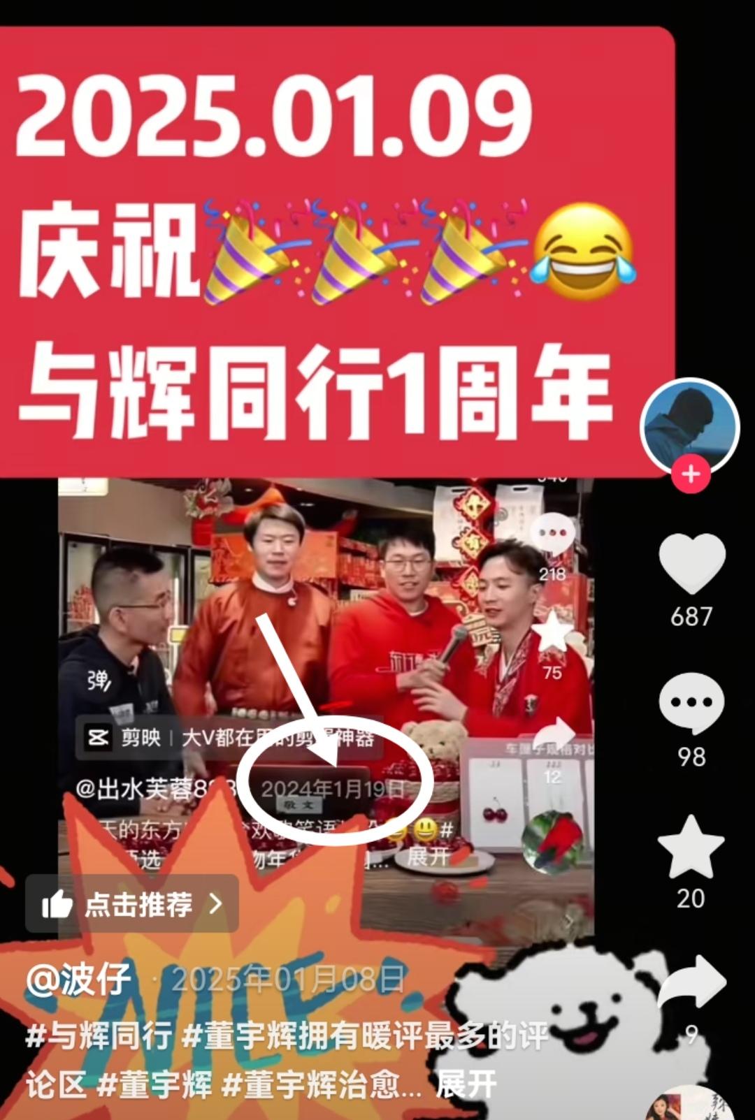 难道与“说书人土土”官司要结束有关系?东方甄选前主播敬文,也突然发文“辟谣”!关于一直被网友盛传的“东方甄选主播们唱好日子”的说法! 这个“谣言”确实比较奇怪,就是全网搜不到一个“唱好日子”的视频切片,都是图片。 如果按照图片的背景、时间(直播间的春节倒计时)、人物穿着。能搜到的都是1月19日的直播切片,且画面高度相符,但与所谓“小董走后第二天”的时间不符合。 新年伊始,东方甄选刚完成换帅,紧跟着主播们也一堆“动作”。对于东方甄选来说,这注定会是热闹的一年! 我个人猜测,有可能跟“说书人土土”的官司近期要结束有关系!且官司结果很可能对“说书人土土”不利。一旦“说书人土土”败诉(假如啊),那势必会是一大热搜!所以东方甄选想利用这个契机开始全面反击以前的“谣言”?以期摆脱目前深受网络负面舆论困扰的局面?