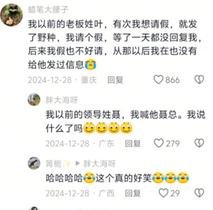 我以前的老板姓叶,有次我想请假,就发了野种,我请个假,等了一天都没回复我后来我假也不好请,从那以后我在也没有给他发过信息