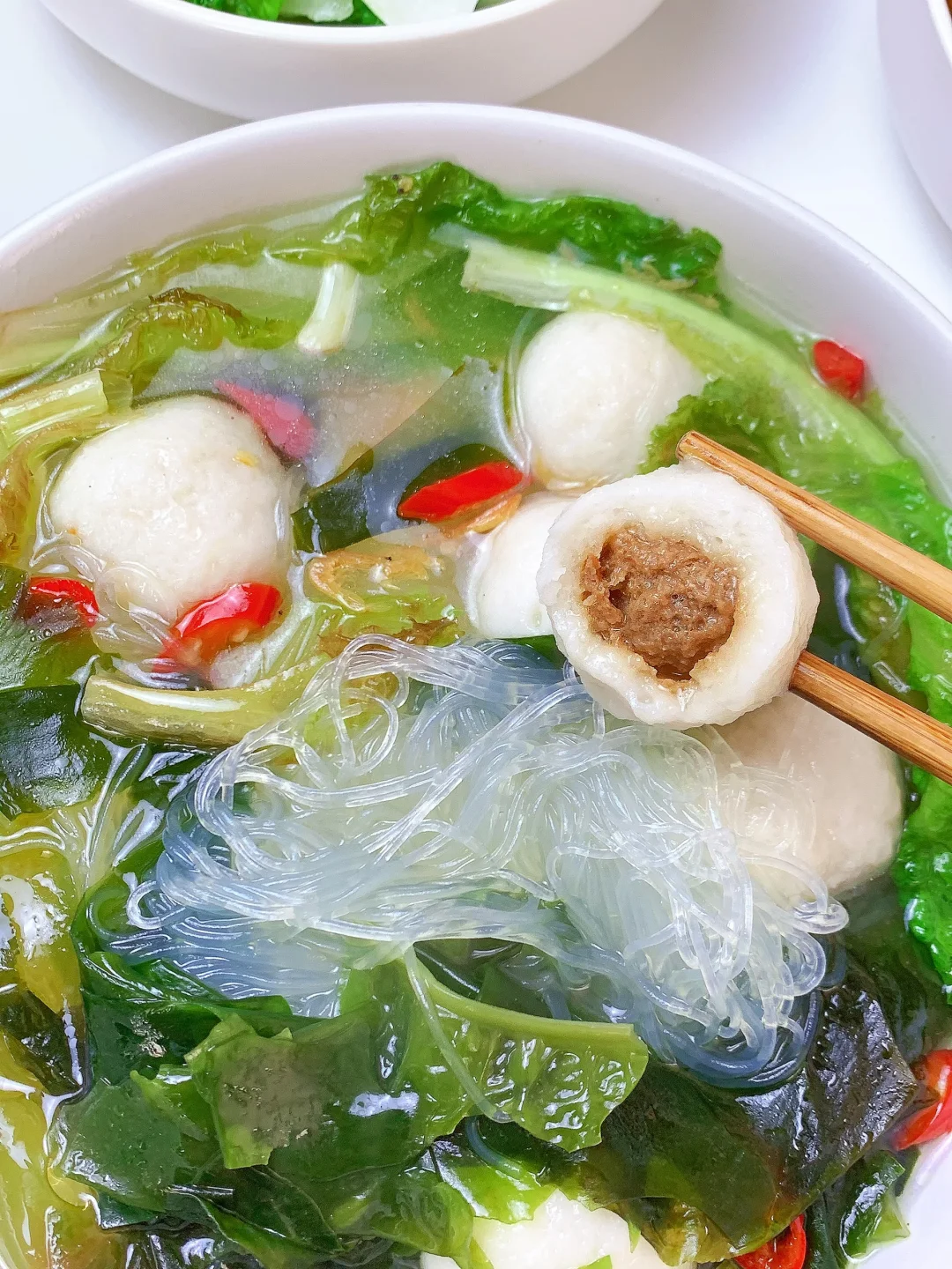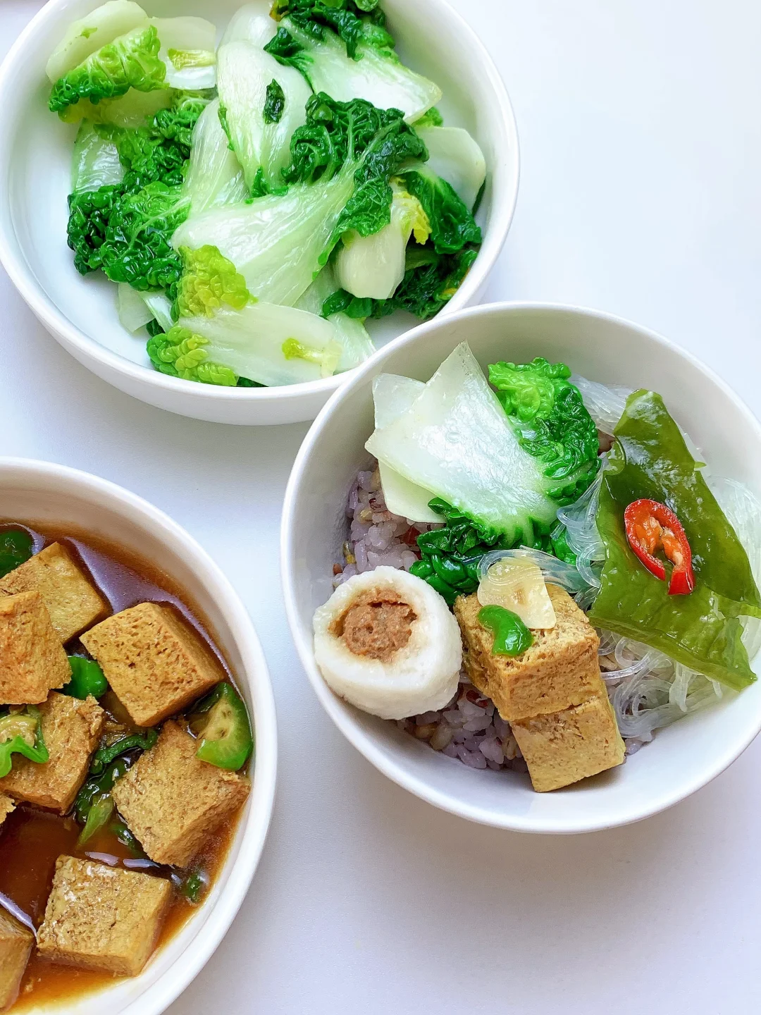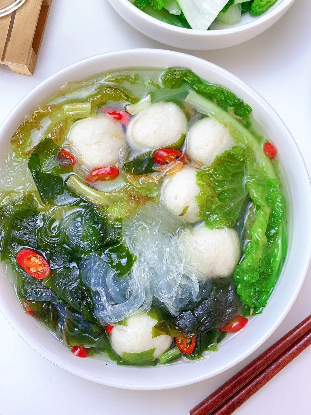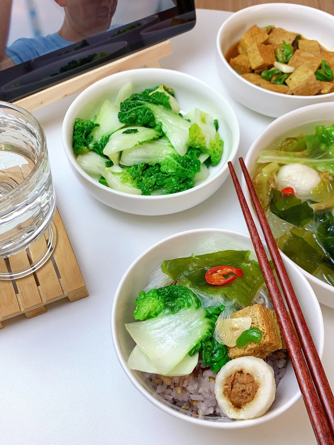 👩🏻🍳分享今日菜单 [一R]清炒奶白菜 [二R]红烧冻豆腐 [三R]裙带菜粉丝鱼丸汤 主食:米饭🍚 ……………………………………………………………………………… 🛒食材清单: 鱼丸 | 粉丝 | 裙带菜 | 奶白菜🥬 | 冻豆腐 ✨红烧汁:一勺生抽,半勺老抽,半勺蚝油,半勺淀粉,半勺白糖,少许盐,少许清水搅匀~ 📝我的美食日记,一日三餐,拒绝外卖[偷笑R],坚持做饭的每一天,吃简单干净的饭菜~ ₍˄·͈༝·͈˄*₎◞ ̑̑