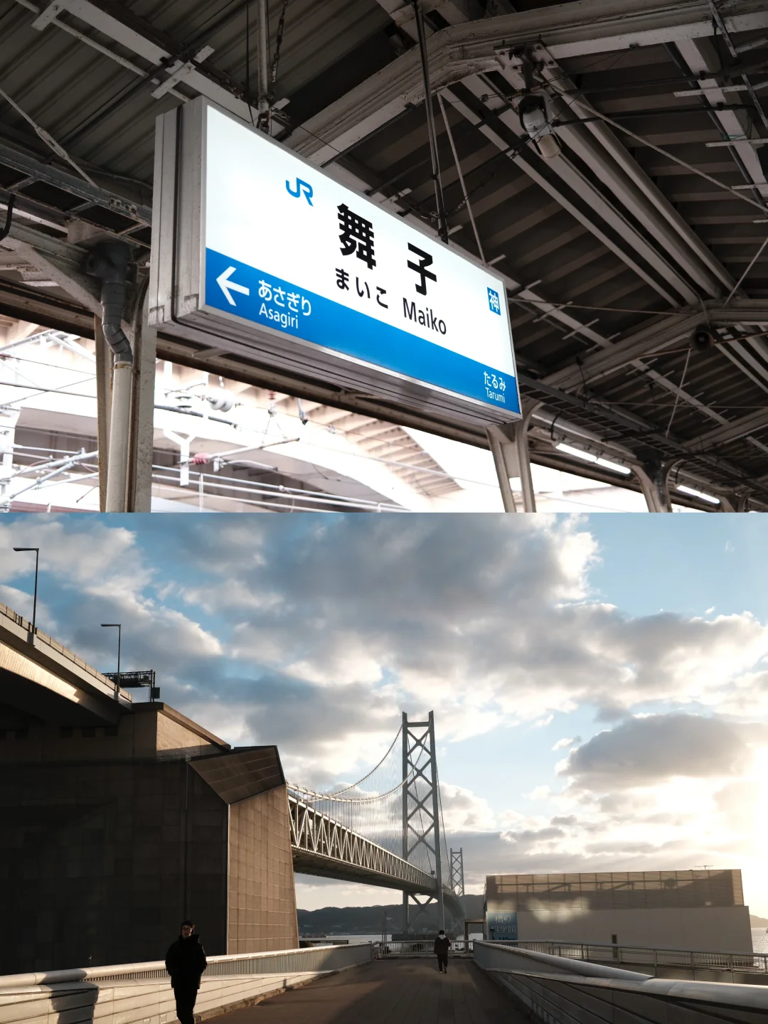 交通🚄:JR/山阳电铁直达—舞子站,西瓜卡直刷;从三宫出发约30分钟,班次密集,平均10分钟一班。舞子站出站左转,过天桥步行约5分钟到舞子公园,远观明石海峡大桥和海景。