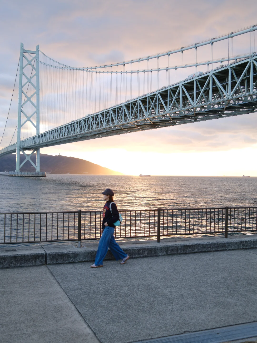 来这里就不要匆忙打卡了,其实也没有太多景点,沿着舞子海上散步道走走都很舒服,海边都是垂钓的人,大家坐在海边看着夕阳一点点落到海平面之下,宁静治愈。
