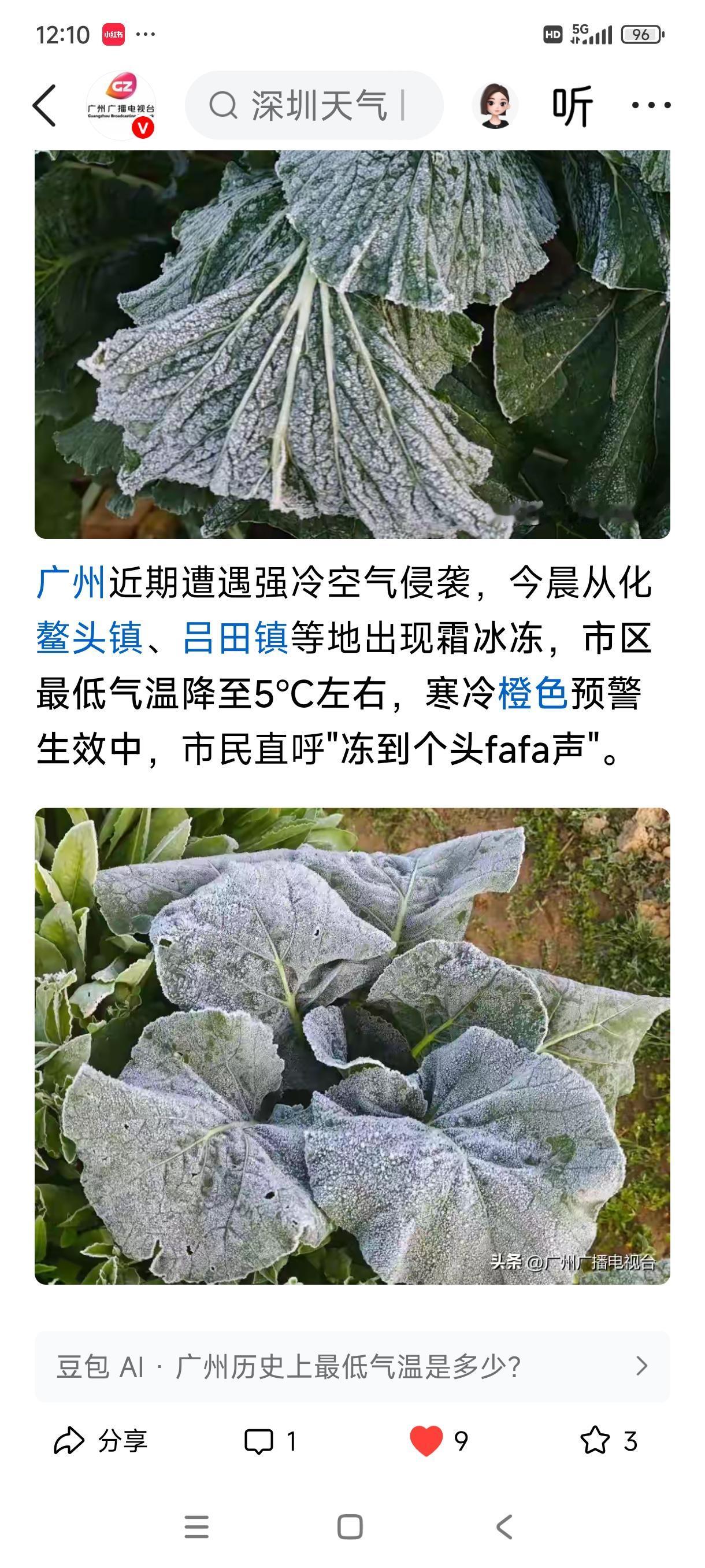 北方有瑞雪兆丰年的说法,其实对于广州地区的增城也是有好处的,因为增城的迟菜心也是需要打过霜才好吃的,又淋又甜,夏天的菜没有冬天的菜那么好吃的。最近几天的从化,花都,增城的农田终于有霜降了,这样的菜才好吃。