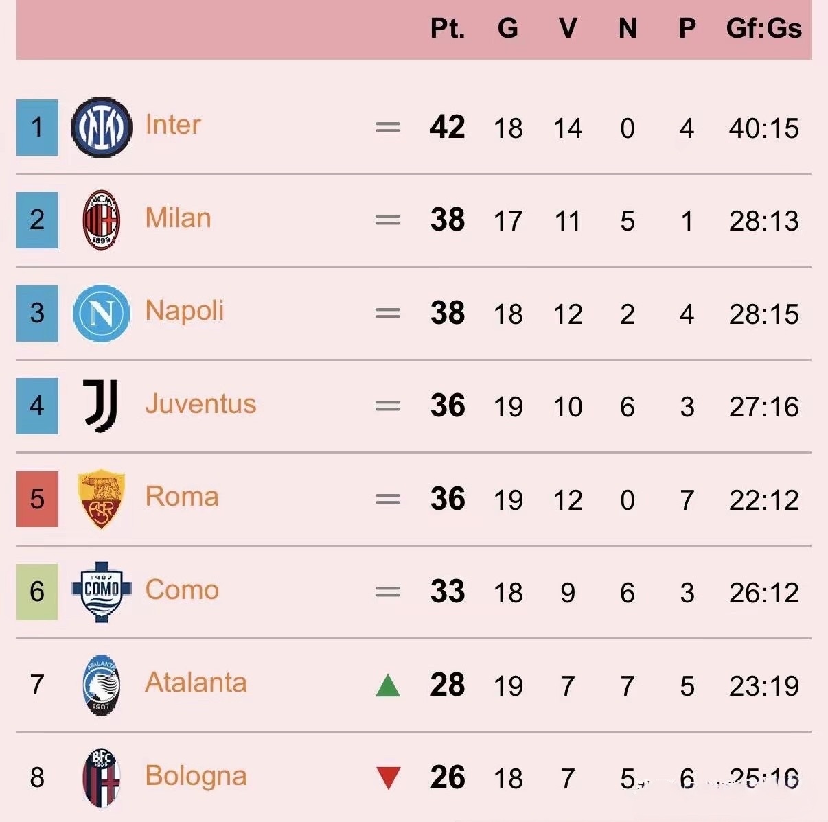 意甲积分榜:国际米兰继续排名第一!意甲第19轮结束8场比赛,先赛的那不勒斯被维罗纳阻击丢2分,国际米兰客场击败帕尔马继续排名积分榜榜首。那不勒斯与国际米兰的积分差距扩大至4分,下轮两队直接交手,不管结果如何国际米兰将继续领先那不勒斯。
