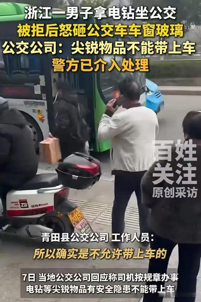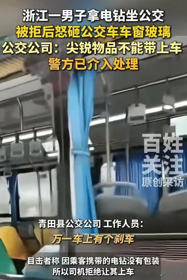 浙江丽水,公交司机老李怎么也没想到,一次普通的劝阻,竟引爆了一场全网争论。 那天中午,一名中年男子背着工具包上了车,手里拎着电钻。 司机按规提醒:“师傅,没外包装的尖锐物品不能上车,请您理解。” 话音未落,男子突然瞪眼:“我打工挣钱养家,你拦我?这叫危险品?那我的命是不是更危险?” 情绪瞬间失控。 他抡起电钻,对着公交车前挡风玻璃就是一砸! “砰——”一声巨响,玻璃蛛网般炸裂; 他又冲向车门,连续猛砸,碎片四溅,乘客尖叫四散。 现场视频传开,舆论炸了。 有人怒斥:“这是暴力犯罪!再难也不能伤公共安全!” 可更多人却沉默了——评论区刷出一句话: **“如果他是西装革履拿着笔记本电脑,你们还会拦吗?”** 我们不得不正视一个现实: 对白领来说,电脑是“生产资料”; 对农民工来说,电钻、扳手、切割机,也是他们吃饭的家伙。 这些工具,在工地是“饭碗”,一上公交就成了“违禁品”? 这不是第一次因“携带工具乘车”引发冲突。 此前多地发生过瓦工被拒载、焊工赶下车的新闻。 规则没有错,但执行时若少了温度,就会变成压垮骆驼的最后一根稻草。 这位男子或许有错——砸车违法,必须承担责任。 但他眼中的愤怒,是不是也藏着一种长期被忽视的委屈? ——找工作难,租房难,连带着谋生工具坐个车,都要被盘问、被驱逐? 他砸的不是玻璃,是那种“我拼命活着却被当成威胁”的憋屈。 值得欣慰的是,事件后当地交通部门已启动调研: 能否为务工人员设立“工具携带绿色通道”? 比如加装防护套、登记备案、固定车厢等,既保安全,也不伤尊严。 法律要守住底线,社会也该留出温情的缝隙。 毕竟,谁不曾为生活低头奔波? 谁又能保证,在疲惫到极点时,还能永远克制理性? 感动人心的文案 酷炫新文案