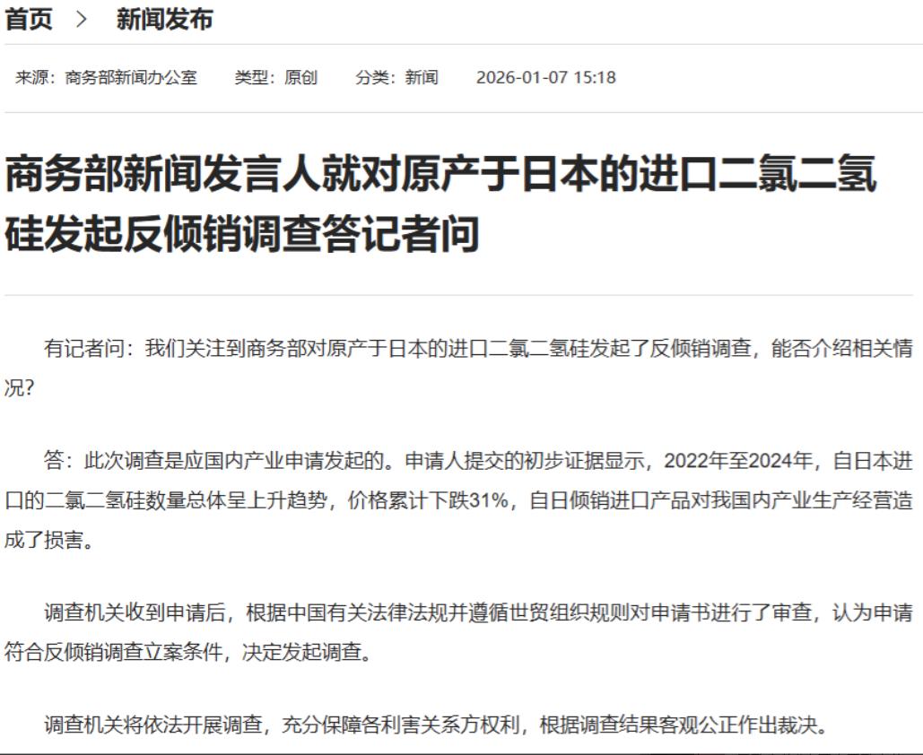 一剑封喉?! 这一波打的是组合拳,普及一下,二氯二氢硅主要用于芯片制造过程中的薄膜沉积,用于生产逻辑芯片、存储芯片、模拟芯片和其他类芯片,也可用于合成硅基系列前驱体和聚硅氮烷等。 现在刚刚开始在经济节奏感很强烈,干到高市早苗为首这届内阁没有好日子过,决策已定,就要实际行动来证明。 中方反制精准有力,直戳日方痛点,彰显维护核心利益的坚定决心!对日本不能心慈手软,日本过去,现在,未来都是中国最大的威胁! 不堵死稀土元素走私这一块等于是白制裁,首先要整顿内部稀土元素冶炼企业杜绝走私,加强严格监管施,不能让一克稀土元素走私出国境,才能让被制裁的国家感到无比的痛,就能增加中国各种谈判的x码。