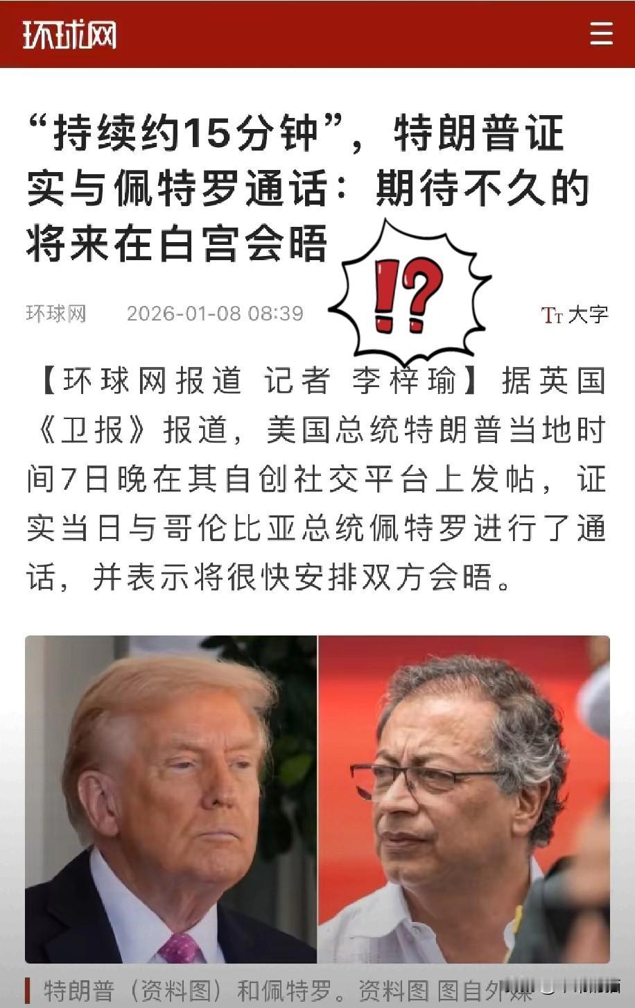 特朗普的虚荣心再一次得到满足 哥伦比亚总统佩特罗也软了 主动给特朗普打电话 解释了毒品问题 以及两人之间存在的其他分歧 这通电话,说穿了就是“硬顶三个月后,先低头的人先保命”。1月4日特朗普还公开骂佩特罗“病态”,撂下“动武听起来不错”;三天后,哥总统自己把电话拨过去,35分钟就把毒品、移民、委内瑞拉三大雷区挨个解释一遍。 别忘了,1月3日美军刚把马杜罗“打包”运出境,哥伦比亚边境连夜增兵3万,炮口还没降温,总统先生就先打给白宫,这剧情转得比拉美 soap opera 还快。 有人说这是“认怂”,我看得更透——这是小国在大国枪口下的生存算术。特朗普要的是“面子+选票”,佩特罗要的是“不被制裁+国内稳得住”;一个要掌声,一个要活路,于是电话线成了最便宜的停火线。 可代价呢?哥国查毒纪录年年新高,特朗普一句“我不信”就能抹平;委国石油、哥国咖啡、拉美移民,全成了华盛顿随手掂价的筹码。 最后就一句话:当“尊严”被放到谈判桌,谁先把电话举到耳边,谁就先把民族面子揣进兜里。 你觉得这事最后会怎么收场?评论区留下观点!