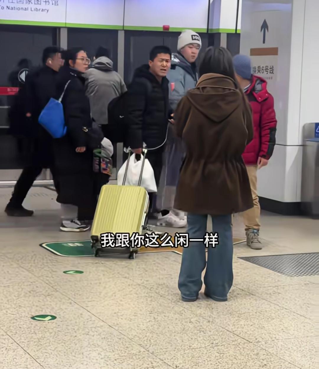 男子坐地铁,被一陌生女子无故从上车前骂到下车后。男子拉着行李箱,对着女子说:“我跟你吵什么,我拉着行李箱,都没空理你,你一直骂我,从门口骂到车上,又从车上骂到下车,谁跟你一样这么闲。”女子就一路跟随,不让男子出站。有网友称,她就是故意激怒别人,让别人动手,她报警讹钱,这是最新骗局。