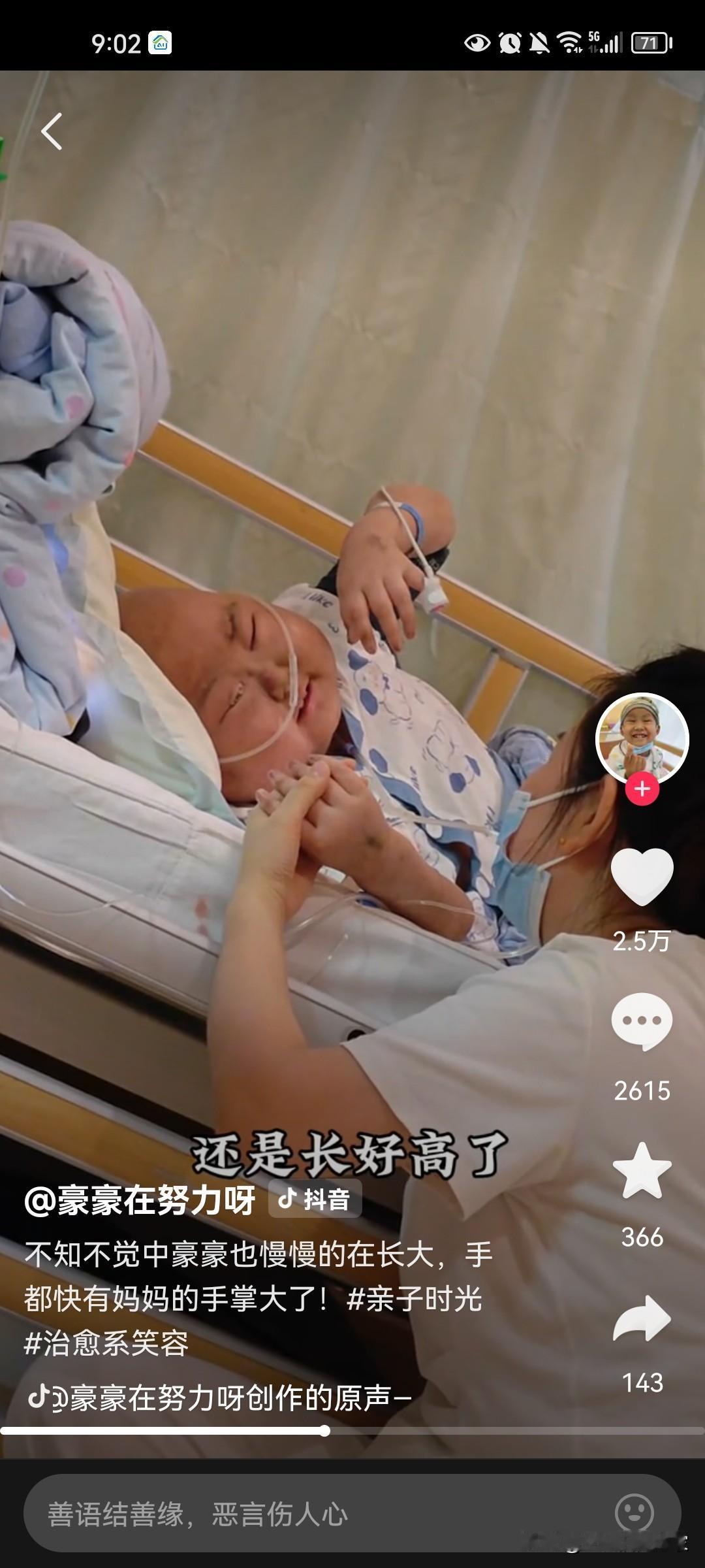 刷到@豪豪在努力呀的最新视频,心里像被揪了一下似的疼。 这个孩子,我前年就关注到了,断断续续追着他的更新,看着他的病情时好时坏,一颗心也跟着七上八下。从4岁到10岁,别的孩子在阳光下奔跑嬉戏,他却大半时光都耗在了医院的病床和冰冷的治疗仪器上,硬生生把童年熬成了一场漫长的苦役。 视频里的豪豪戴着吸氧管,虚弱却笑着跟妈妈撒娇,说自己快有奶奶高了,再过十年二十年就能娶媳妇了。那稚嫩的话语,听得人鼻子发酸,满心都是说不出的滋味。作为一个家长,我实在不敢深想,他的父母在无数个深夜里,是怎样忍着眼泪,强撑着笑容陪他走过这些艰难的日子。 恍惚间,我想起了自己12岁那年,也曾被一张病危通知书判了“死刑”。如今为人家长,才真正读懂当年父母脸上强装的镇定下,藏着怎样的惶恐与煎熬。万幸的是,我熬过了那场劫难,还在二十年后拥有了自己的小宝贝,能陪着他看遍人间烟火。 所以真的好想,好想有奇迹降临在豪豪身上。这个懂事得让人心疼的孩子,值得再多看看这个世界的美好,值得再多陪陪那些爱他入骨的家人。