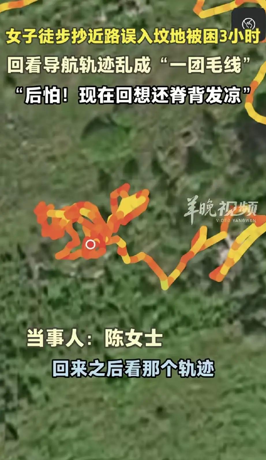 近日,昆明的陈女士遇见奇怪的事情,她抄近路回家误入坟地,愣是3个小时没有走出来。 陈女士说:后怕!自己脊背发凉。 原来, 陈女士一个人上山徒步,走到半路上,遇到森林防火。 陈女士被森林防火拦下来,没能继续徒步。 工作人员让她从旁边的一条大路下山。 陈女士查导航发现,那条下山的路,路程远,用的时间比较长。 所以,她没有走工作人员说的那条大路。 她溜溜哒哒的走着,发现旁边一条小道。 自己就想着一边走一边看。 反正条条大路通罗马,这个地方自己很熟悉。 她就朝这条小路走了。。。 谁曾想, 陈女士选择的这条线路越走越窄。 走着走着,最后就走到了一片坟地。 到了一片坟地,陈女士懵了,没有路了。 回头想着再回去,这来时的路也找不到了。 陈女士就在那片坟地里来来回回找了将近三个小时。 她想找出路,找不到,想找来时的路,也看不见了。 陈女士真的懵了。 这可怎么办? 天都慢慢黑了,她还在坟地里面转悠。 就是找不到哪里可以出去。 这黑天了,在坟地,难免心里害怕,这是正常心理。 后来,她总算找到了一处相对平缓的地方 。 她就从这个平缓的地方,硬生生爬了出来。 她出来以后,回头看自己走的导航轨迹,说乱成了“一团毛线”。 陈女士吓坏了,因为一个人的一次徒步,让她困在坟地里面3个小时出不来。 从陈女士发的照片看,这坟地野草丛生,而且很高。 大家都曾经给逝去的亲人上过坟。 都知道坟地里面野草丛生,看不见路。 有的坟地有一条小路,可以走进去,可是,到了坟地的尽头,路就没有了。 因为没有路,所以陈女士就是坟地转来转去,出不去了。 不说陈女士害怕,已经快黑天了,又是一个人,很多人都害怕。 这一次教训,估计陈女士以后不会一个人徒步了。