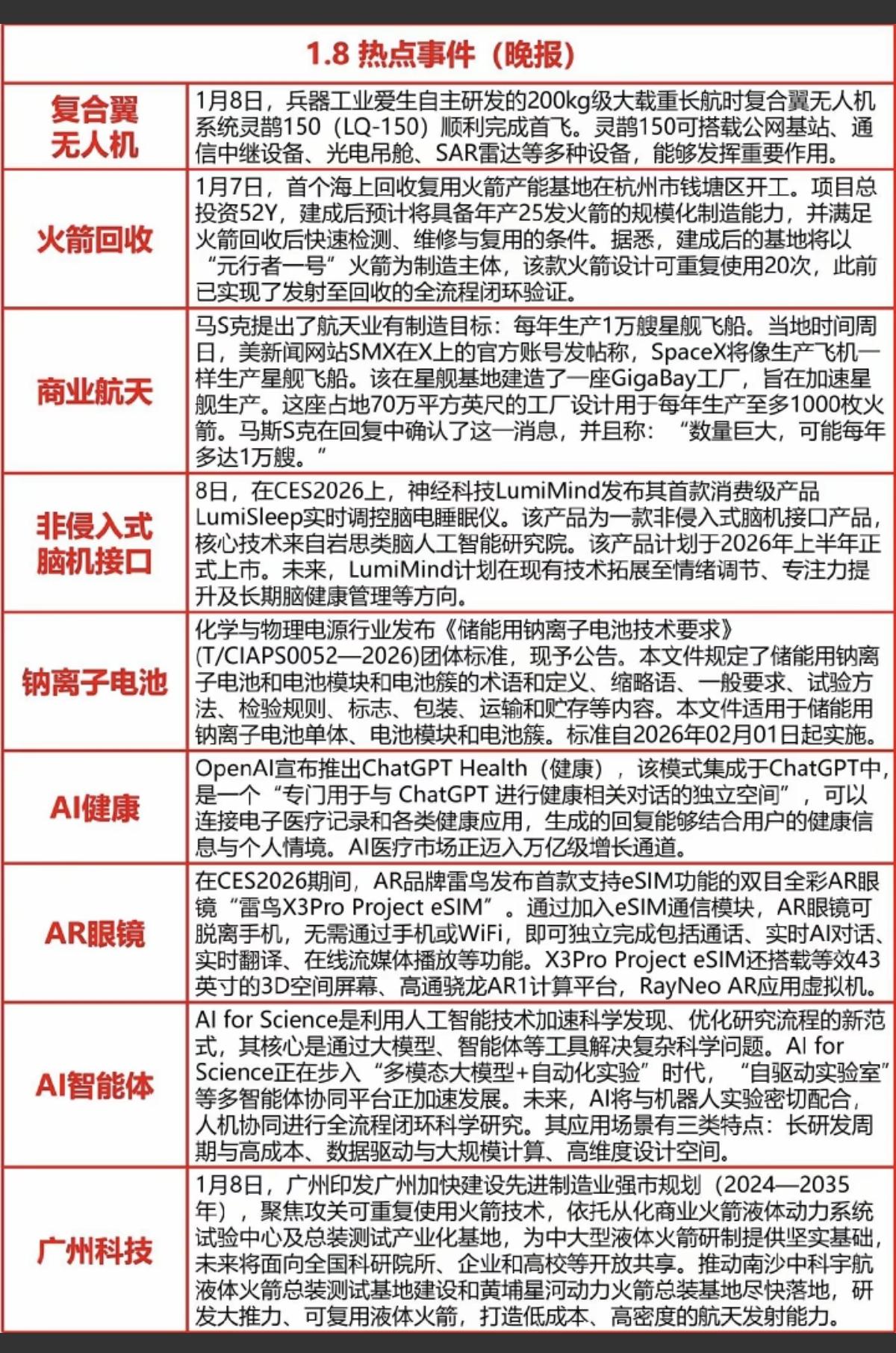 1.09周五 财经热点新闻! 1.复合翼无人机 2.火箭回收 3.非侵入式脑机接口 4.钠离子电池 5.智能体AI,ai眼镜,ai健康