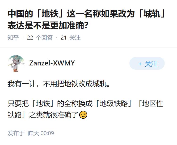 中国的「地铁」这一名称如果改为「城轨」表达是不是更加准确?