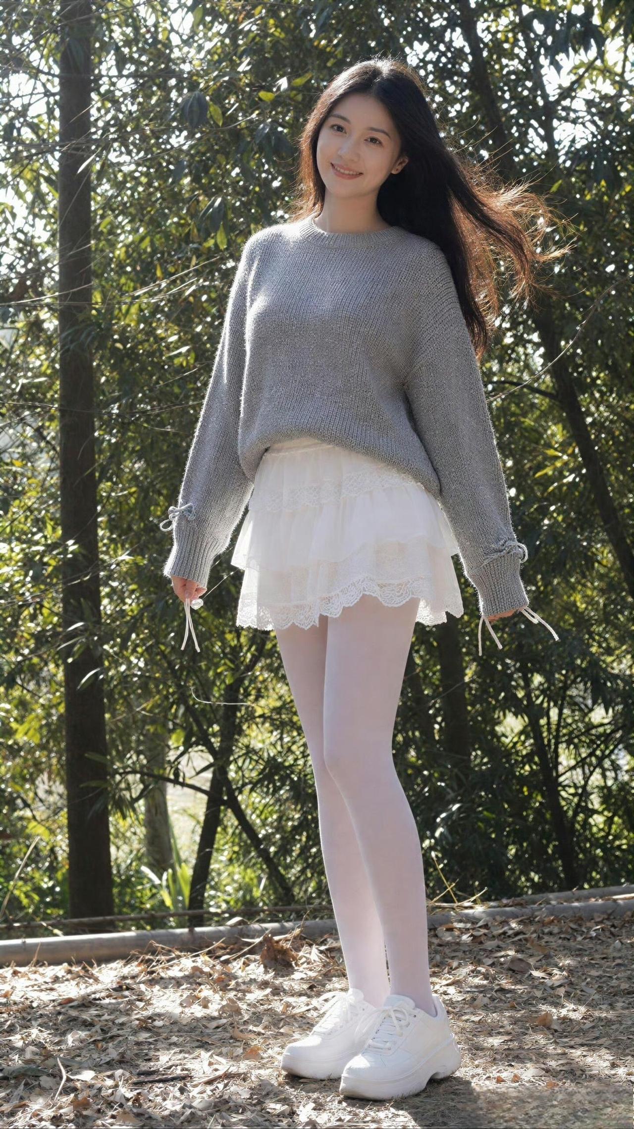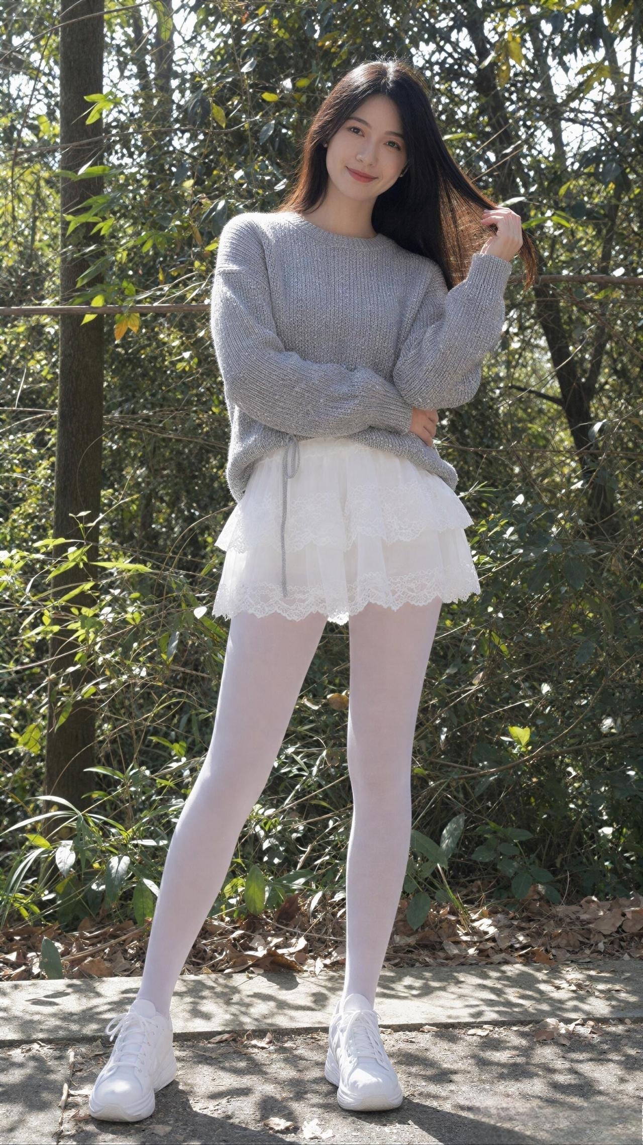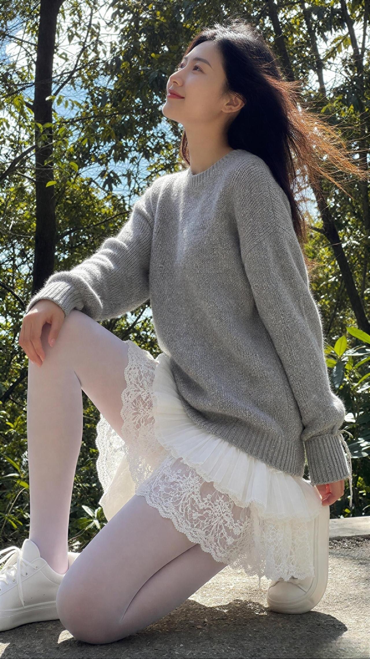 这套穿搭是清新甜美的灰调少女风,把软糯质感和灵动细节融合得很温柔。浅灰宽松针织衫自带慵懒软糯感,抽绳设计添松弛氛围;搭配白色蕾丝短裙,注入甜美元素,层叠裙摆显灵动。 搭配小白鞋强化清新调性,让造型更显干净柔和;简约无配饰的搭配,突出了穿搭本身的甜美松弛感。充分展现穿着者清新甜美的少女魅力。纯真少女感穿搭 活力少女感穿搭 灰色减龄穿搭 纯真少女风穿搭