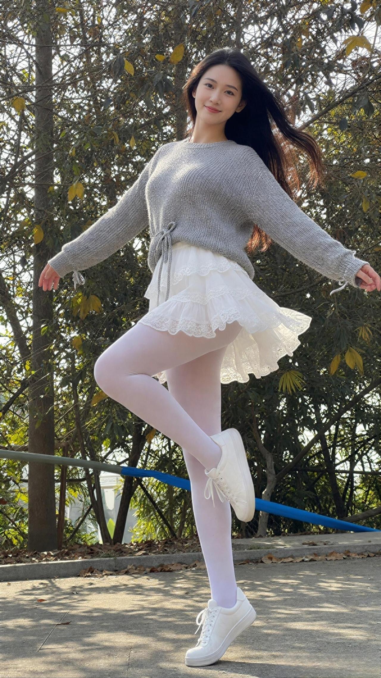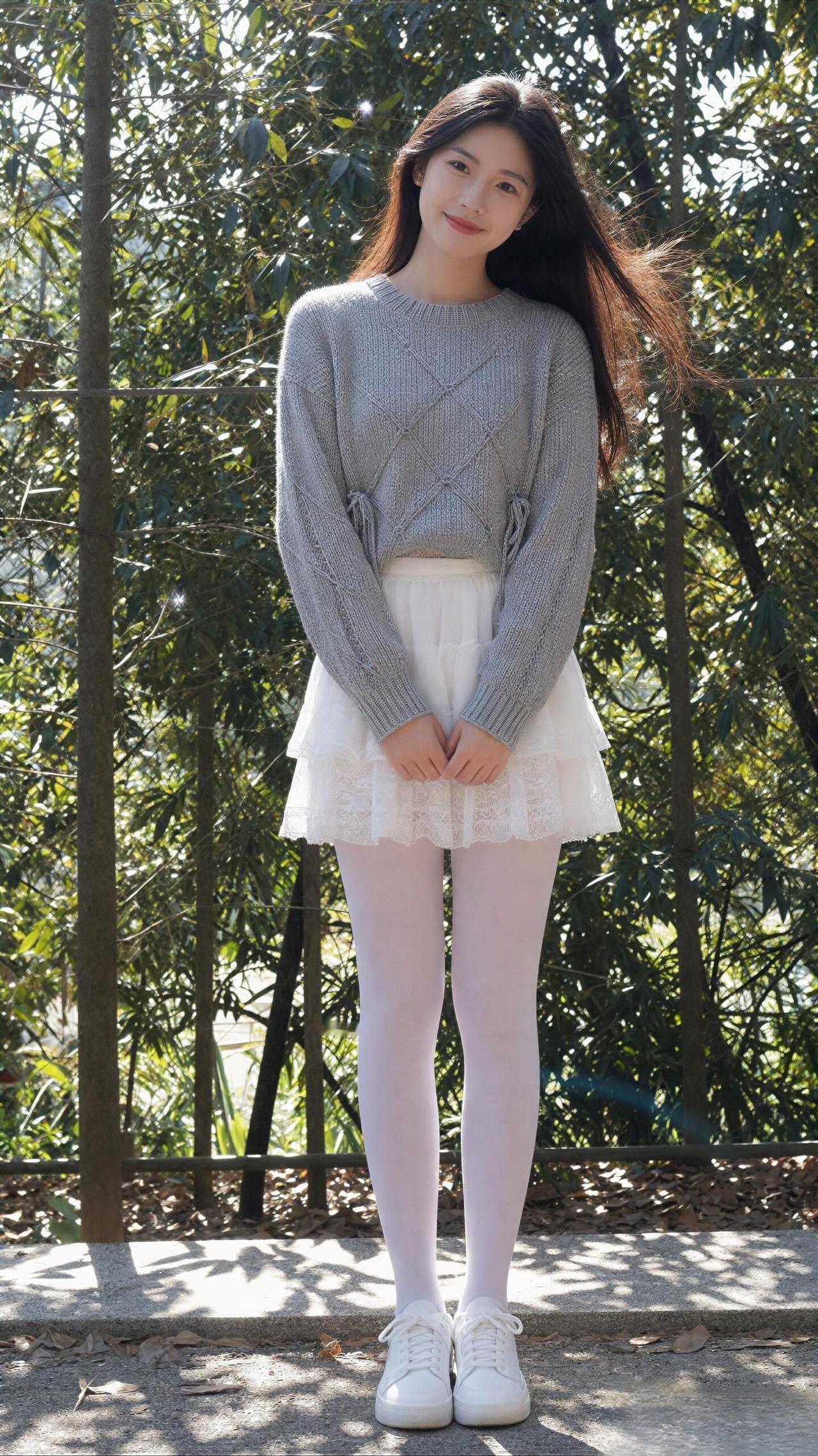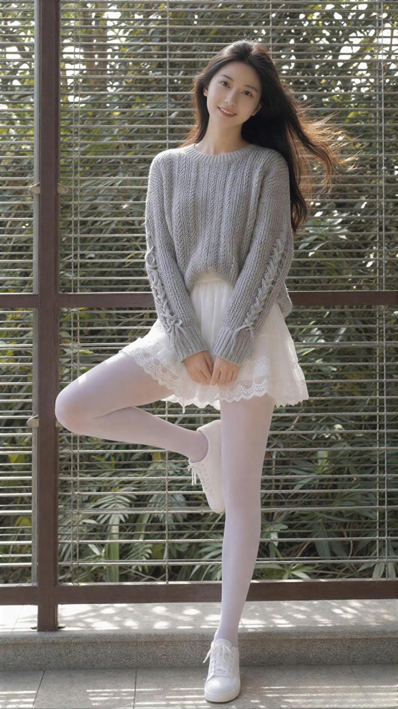这套穿搭是清新甜美的灰调少女风,把软糯质感和灵动细节融合得很温柔。浅灰宽松针织衫自带慵懒软糯感,抽绳设计添松弛氛围;搭配白色蕾丝短裙,注入甜美元素,层叠裙摆显灵动。 搭配小白鞋强化清新调性,让造型更显干净柔和;简约无配饰的搭配,突出了穿搭本身的甜美松弛感。充分展现穿着者清新甜美的少女魅力。纯真少女感穿搭 活力少女感穿搭 灰色减龄穿搭 纯真少女风穿搭