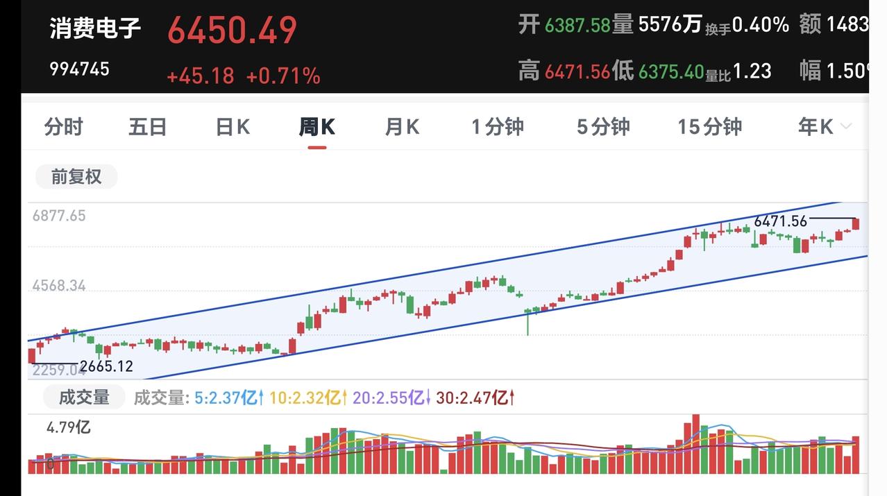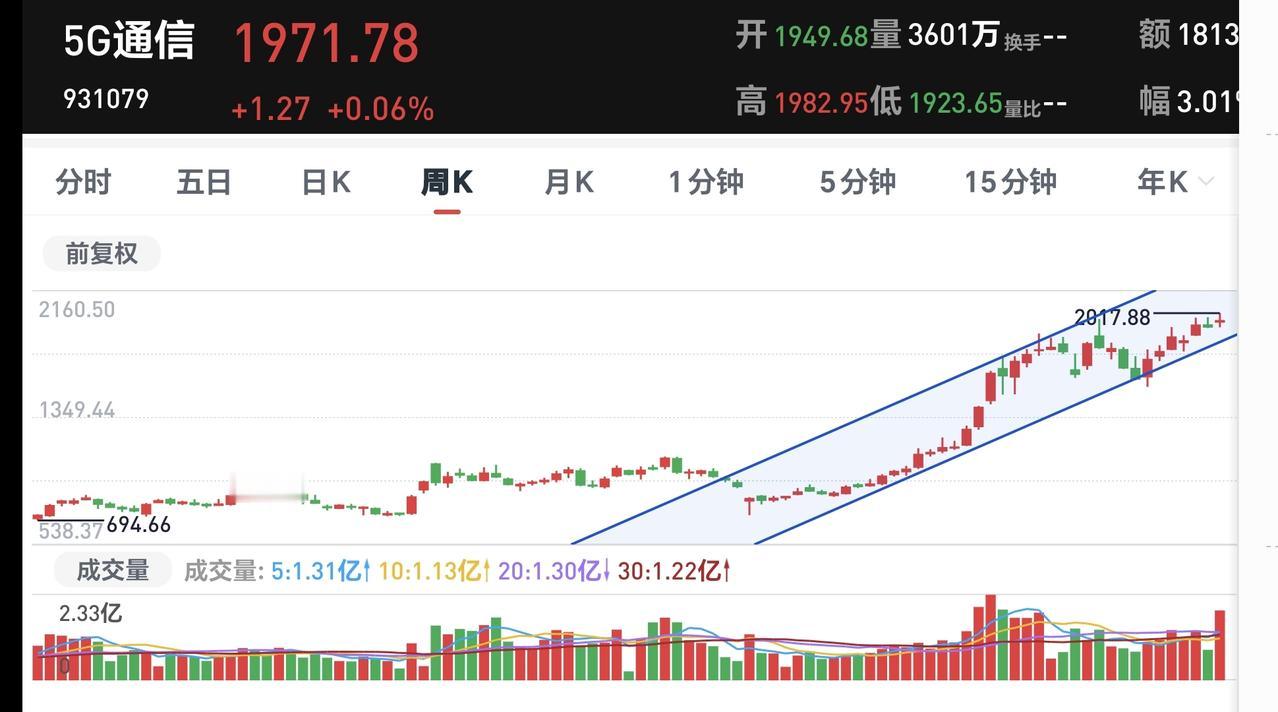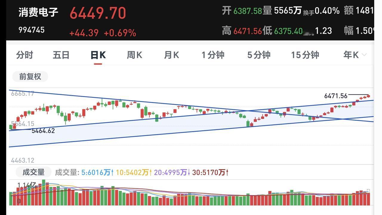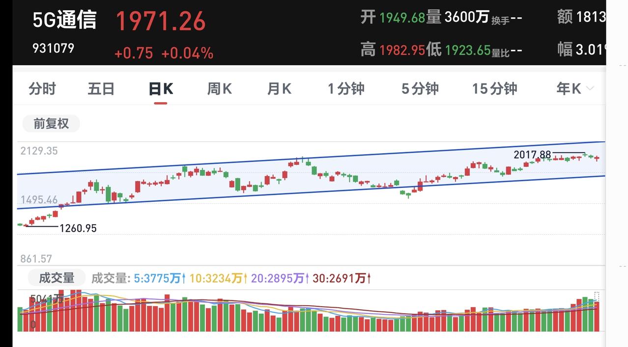 基金:今天的加仓和减仓板块 日本和韩国市场今天上涨,日本上涨了1.55%,韩国上涨了0.38%。 香港市场今天也是上涨,恒生指数上涨了0.07%,国企指数上涨了0.02%,恒生科技指数上涨了0.04%,上涨的幅度都很小。 图3是今天基金的加仓排行榜,图4是今天基金的减仓排行榜,图5是今天基金的持有人数飙升榜,图6是今天基金的加仓人数和减仓人数,今天加仓18461157人,今天减仓7136233人,今天加仓人数超过了减仓人数。 我们再来看一下盘面的情况,现在上涨3039家,下跌2223家,涨停83家,跌停3家,上涨家数超过了下跌家数,两市累计成交23945亿,相比于昨天同期放量了15%,说明下午开盘以后有些许的缩量,中午收盘的时候放量幅度为16%,主力资金净流出338亿。 我们来看一下下面的截图8,这是5G通信板块日K线图,从图中可以看出,我画了两条倾斜向上的斜线,这是5G通信板块日线级别上涨通道,现在的位置处于这个上涨通道内,也就是说,5G通信板块日线级别处于上涨趋势中,持有的人可以继续持有,除非跌破这个上涨通道的下轨,才可以考虑要不要止盈出来观望。 我们来看一下下面的截图9,这是5G通信板块周K线图,从图中可以看出,我画了两条倾斜向上的斜线,这是5G通信板块周线级别上涨通道,现在的位置处于这个上涨通道内,也就是说,5G通信板块周线级别处于上涨趋势中,持有的人可以继续持有,除非跌破这个上涨通道的下轨,才可以考虑要不要止盈出来观望。 我们来看一下下面的截图10,这是消费电子板块日K线图,从图中可以看出,我画了两条倾斜向上的斜线,这是消费电子板块日线级别短期上涨通道,前段时间的上涨突破了这个上涨通道的上轨,也就是说,消费电子板块日线级别短期有可能在走加速走势。 我们来看一下下面的截图11,这是消费电子板块周K线图,从图中可以看出,我画了两条倾斜向上的斜线,这是消费电子板块周线级别上涨通道,现在的位置处于这个上涨通道内,也就是说,这个板块周线级别处于上涨趋势中,持有的人可以继续持有,除非跌破这个上涨通道的下轨,才可以考虑要不要止盈出来观望。 持有的基金中,估值上涨幅度最大的三个板块是:先进制造板块,医疗板块,军工板块,下跌幅度最大的三个板块是:海外互联网板块,证券板块,5G板块,估值整体上涨了5824元。 现在绝大部分的板块按照划线来看,都是可以持有,但进场需要谨慎,这也反映了大盘的环境也是这样的,今天究竟应该怎么办?我会在评论区留言,谢谢大家的评论点赞和支持。 我每天都会分享我的观点,我的观点只代表我个人的看法,不能作为你操作的依据,据此操作后果自负。