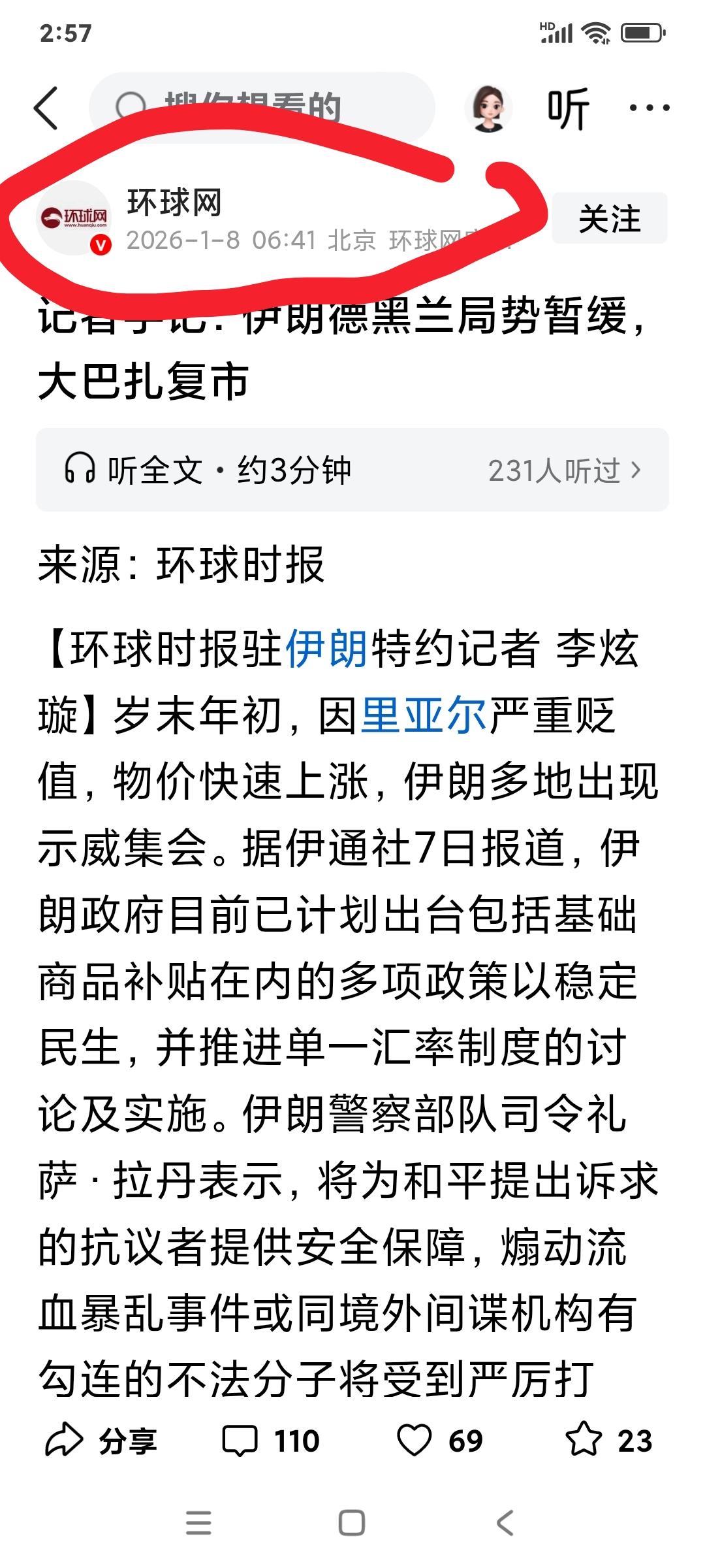 [大笑][大笑][大笑]到底谁在撒谎?环球时报信誓旦旦认为伊朗德黑兰形势好转,同样周四,自媒体转发的美国新闻网的消息,伊朗大街上聚集着大量的散步人群,情况不容乐观。同一时间怎么会出现二种极端不一样的新闻,到底谁在撒谎?[大笑][大笑]