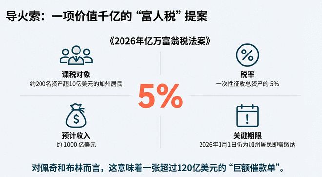 ·课税对象:针对约200名在加州居住且资产超过10亿美元的富豪。