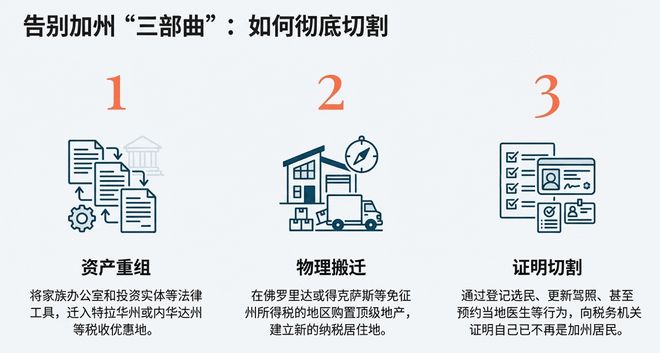 ·最后是彻底切割:通过在当地登记选民、更新驾驶执照甚至预约医生,来向税务机关证明自己已不再是加州居民。